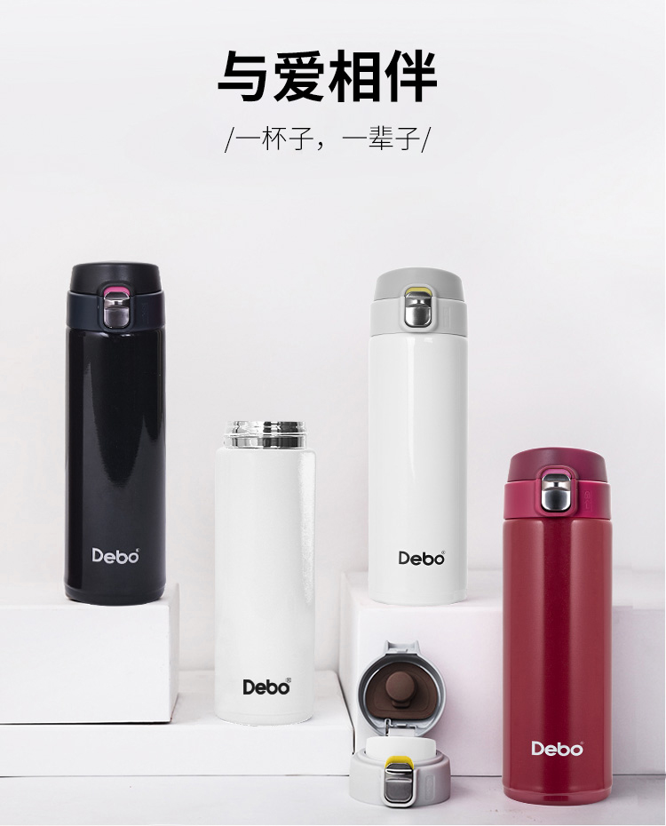德国Debo德铂 托马斯304不锈钢真空保温杯弹跳杯480ml 黑色