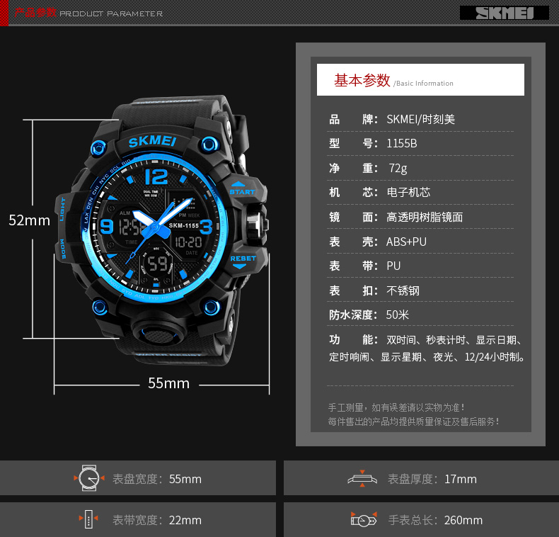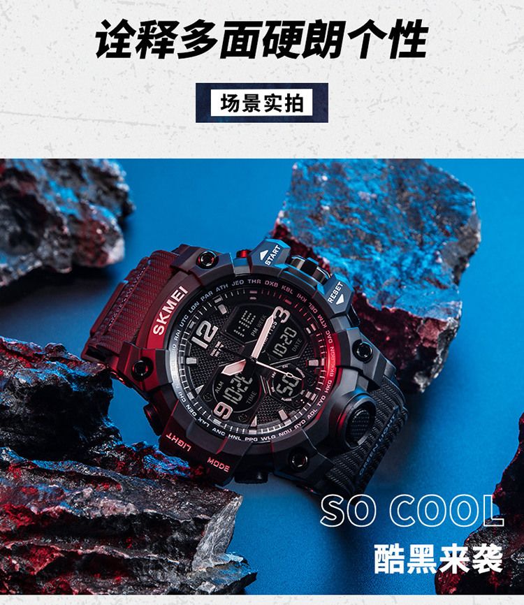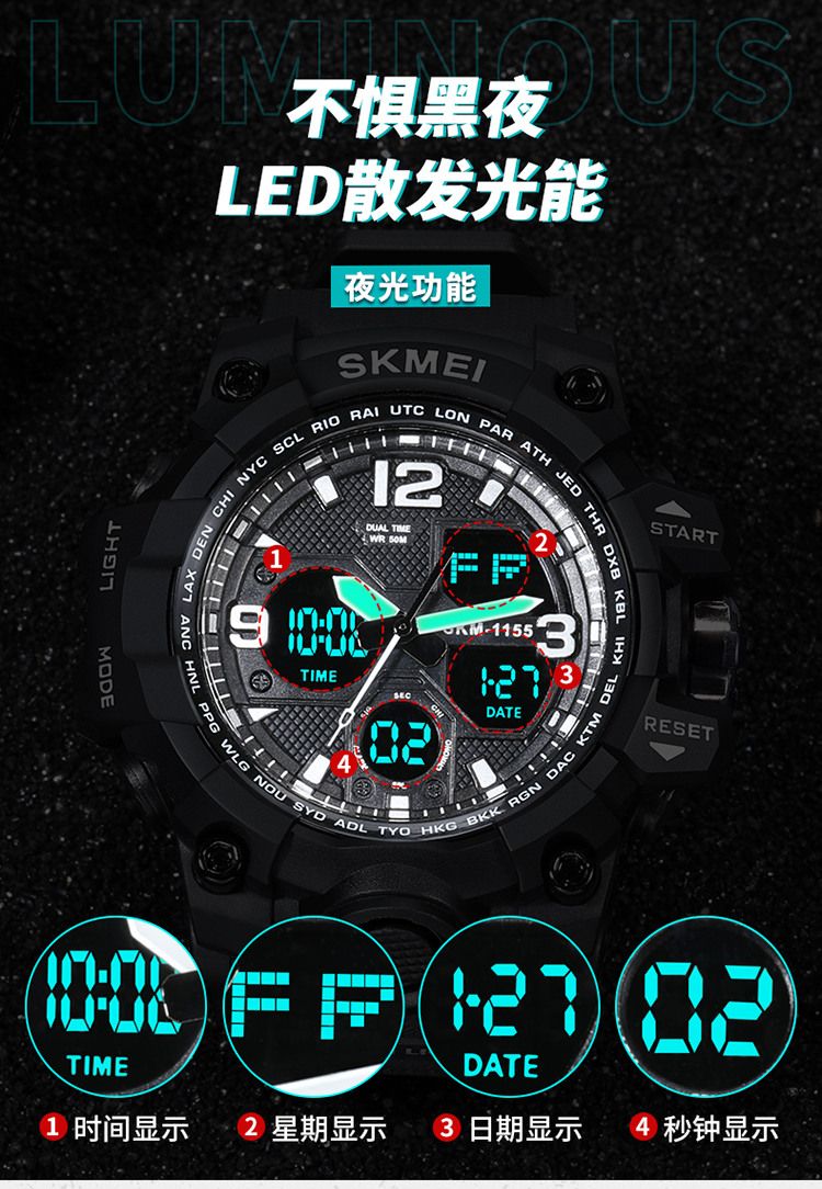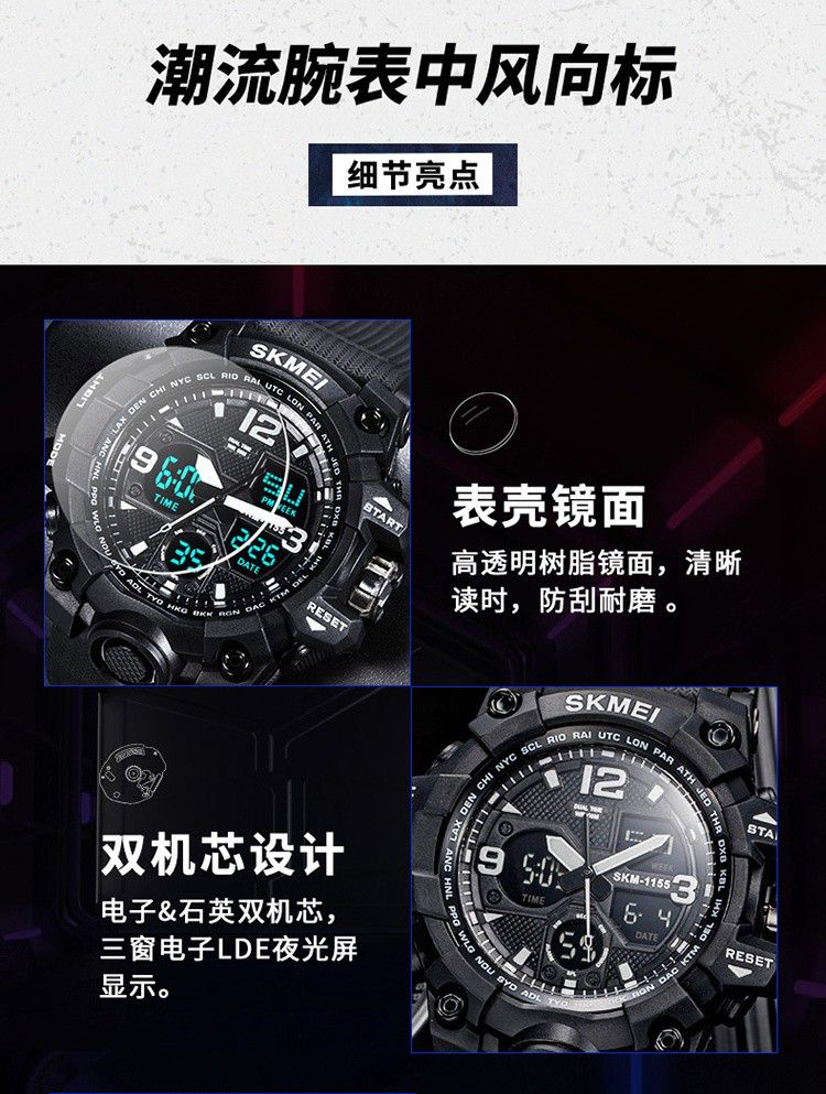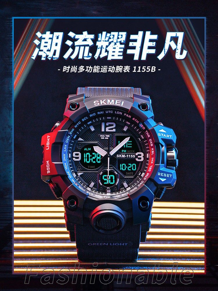 时刻美电子表男初中学生青少年防水特种兵机械潮流儿童运动手表男1155B