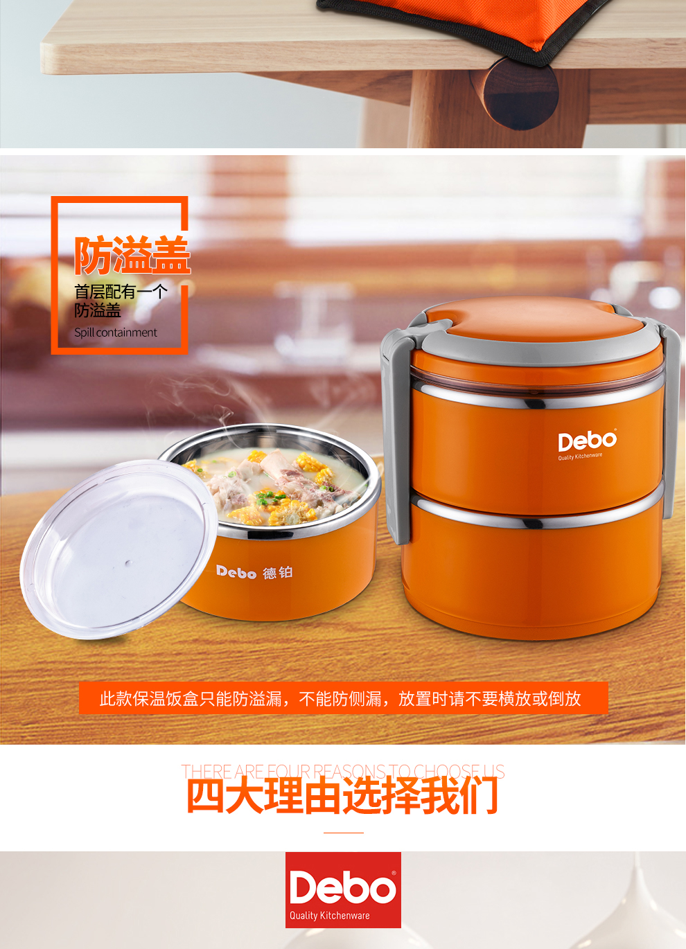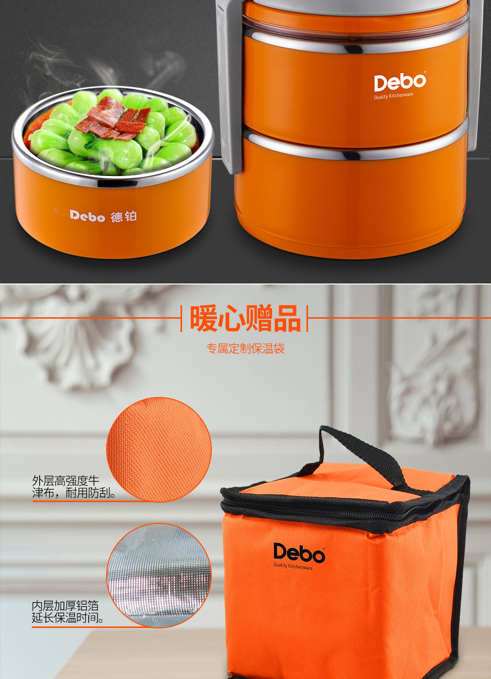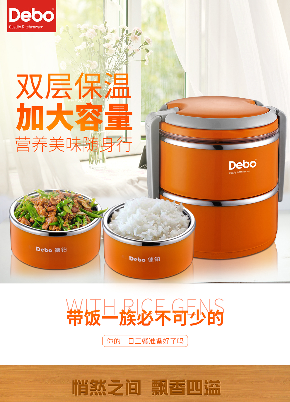 您所在的位置:首页 > 家居日用  > 厨房配件 > 饭盒/提锅  > 德国Debo德铂 卡洛琳手提大容量不锈钢饭盒学生二层保温便当盒成人日式餐盒配保温袋1.4L