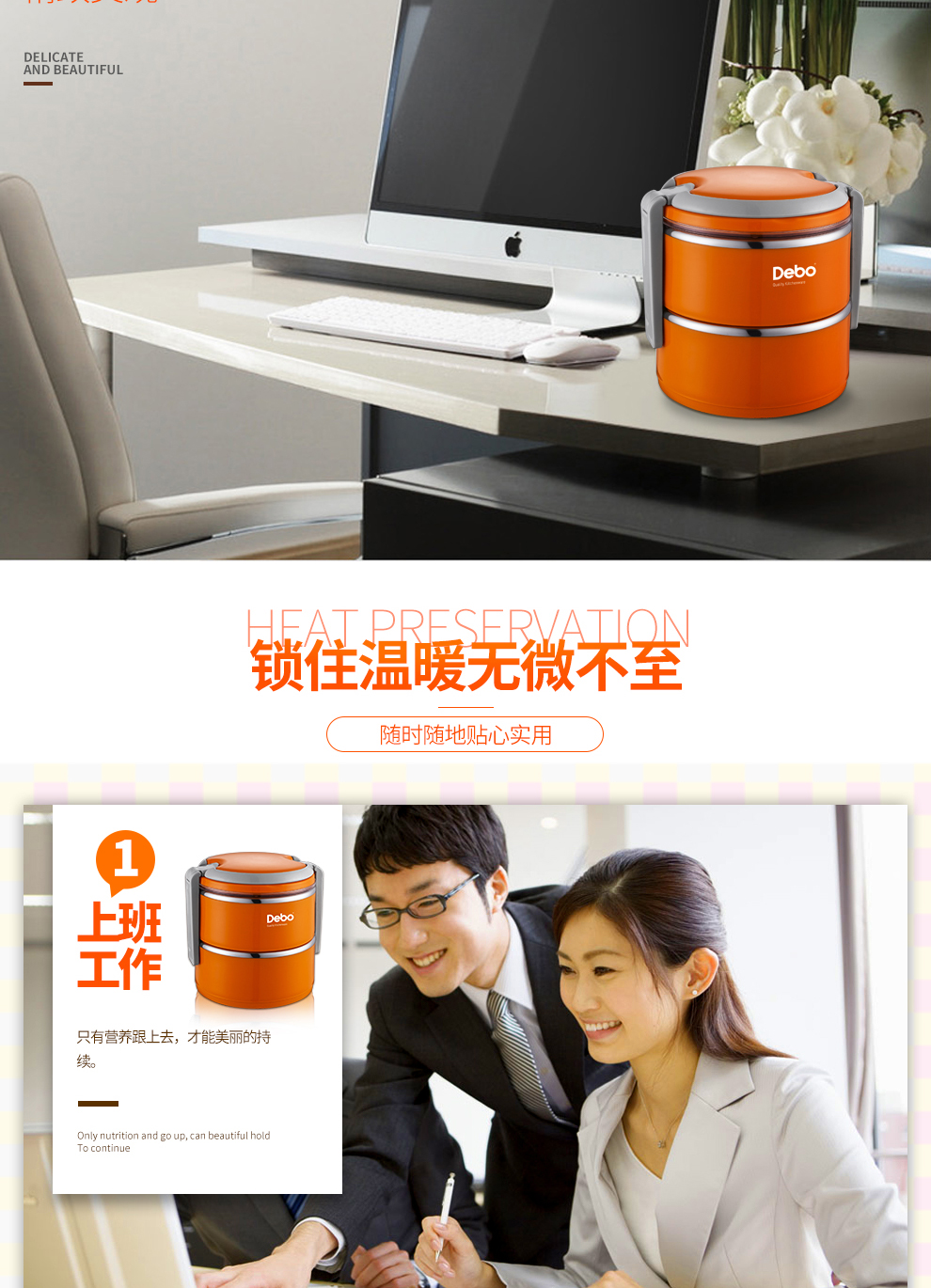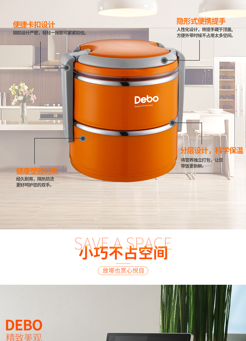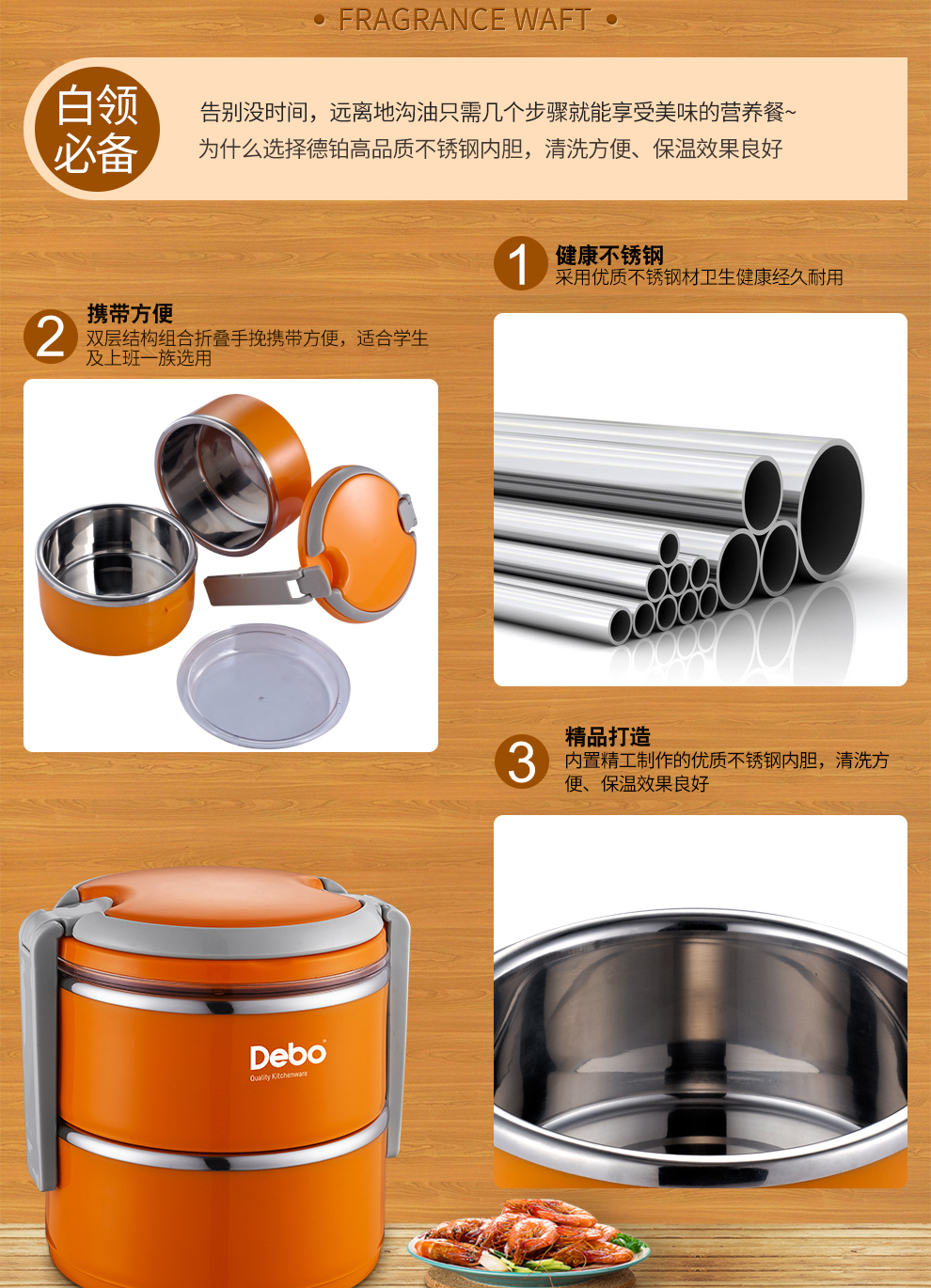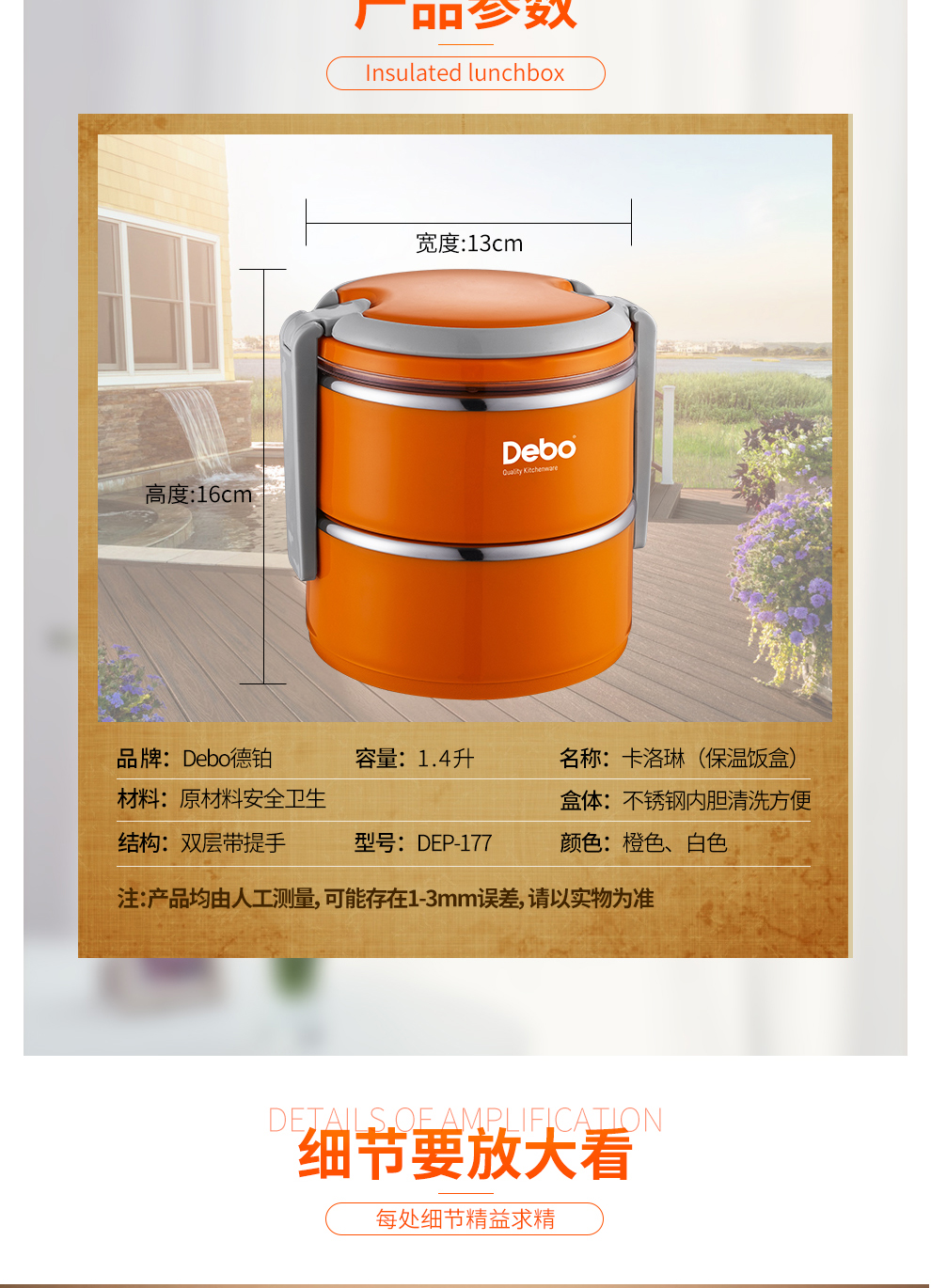 您所在的位置:首页 > 家居日用  > 厨房配件 > 饭盒/提锅  > 德国Debo德铂 卡洛琳手提大容量不锈钢饭盒学生二层保温便当盒成人日式餐盒配保温袋1.4L