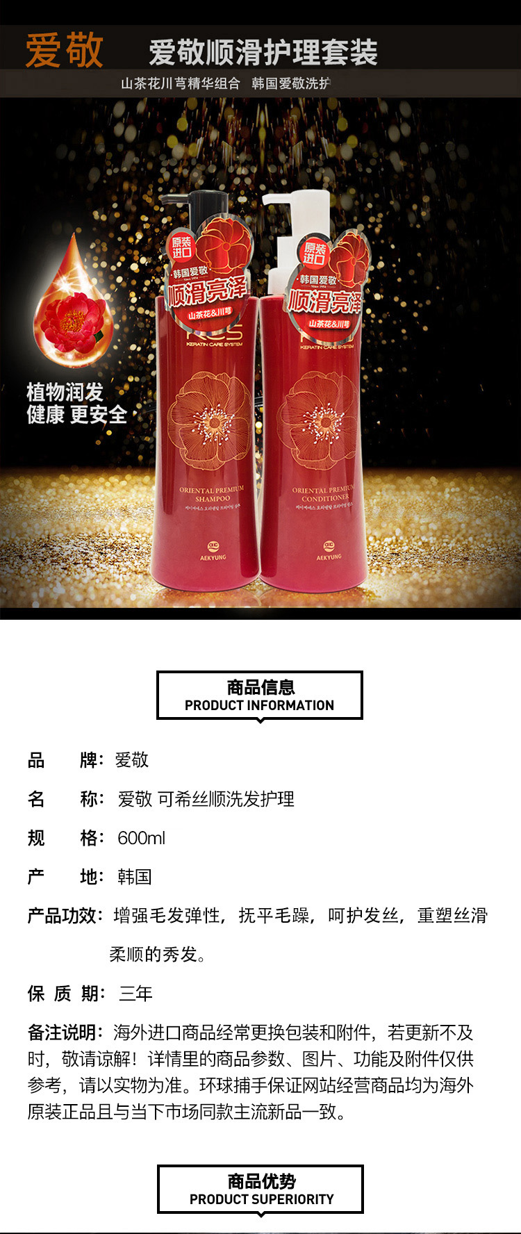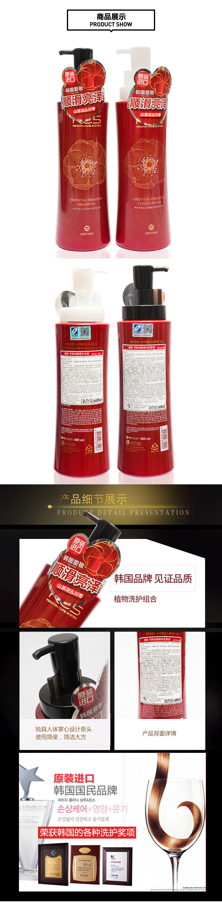 韩国爱敬 可希丝顺滑洗发香波 600ml