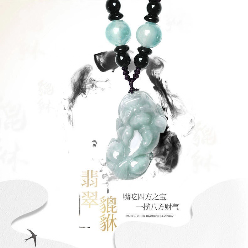 四福珠宝 天然A货翡翠貔貅吊坠 男女款招财貔貅挂件 编绳项链