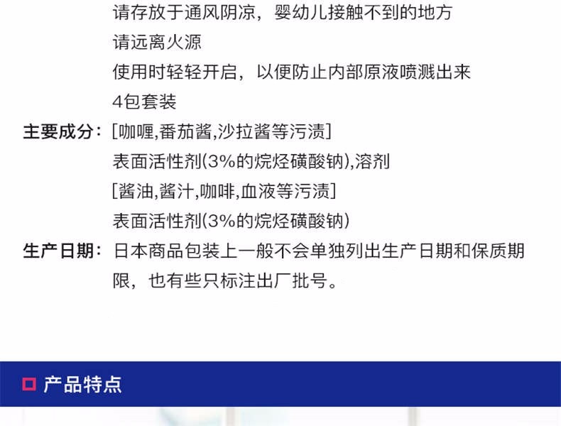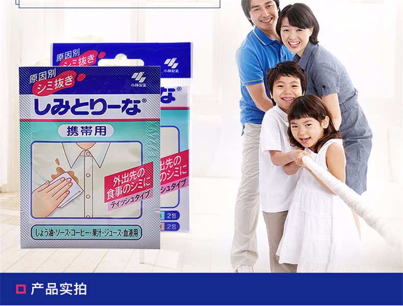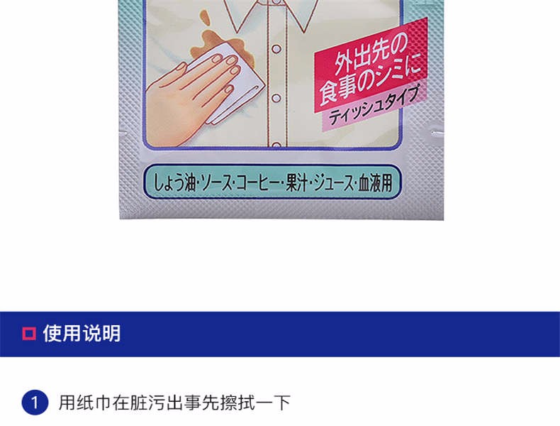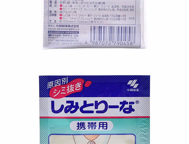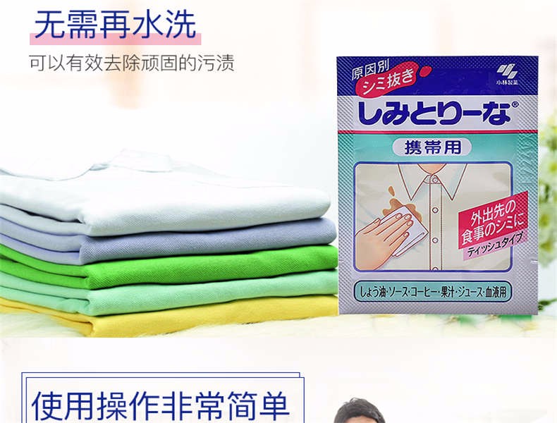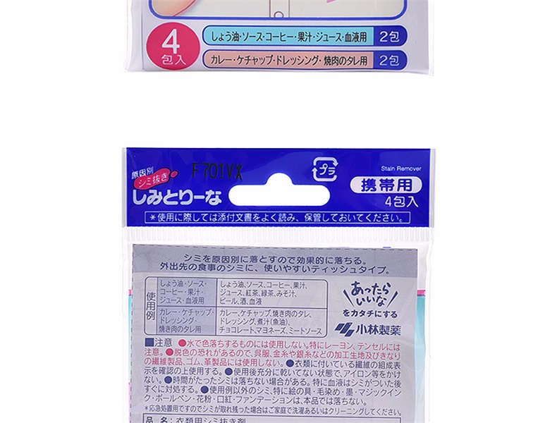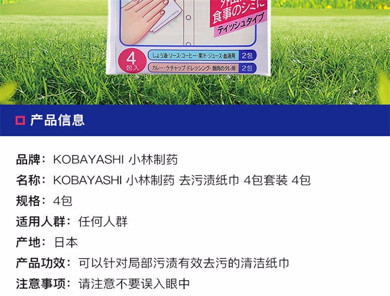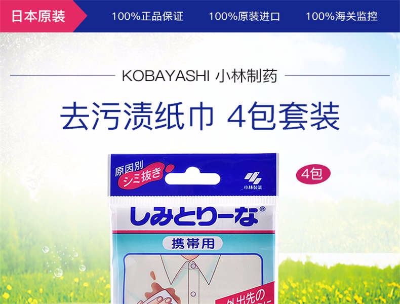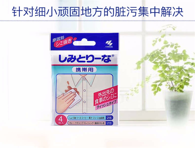 日本小林制药 急救衣物去油污清洁纸 便携装(4片/包)