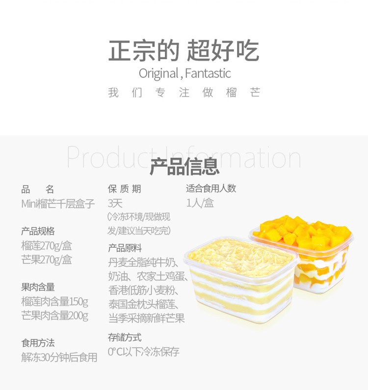 榴芒一刻榴莲mini千层盒子蛋糕 270g/盒