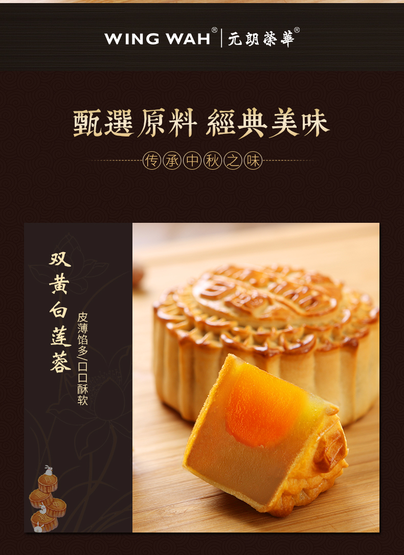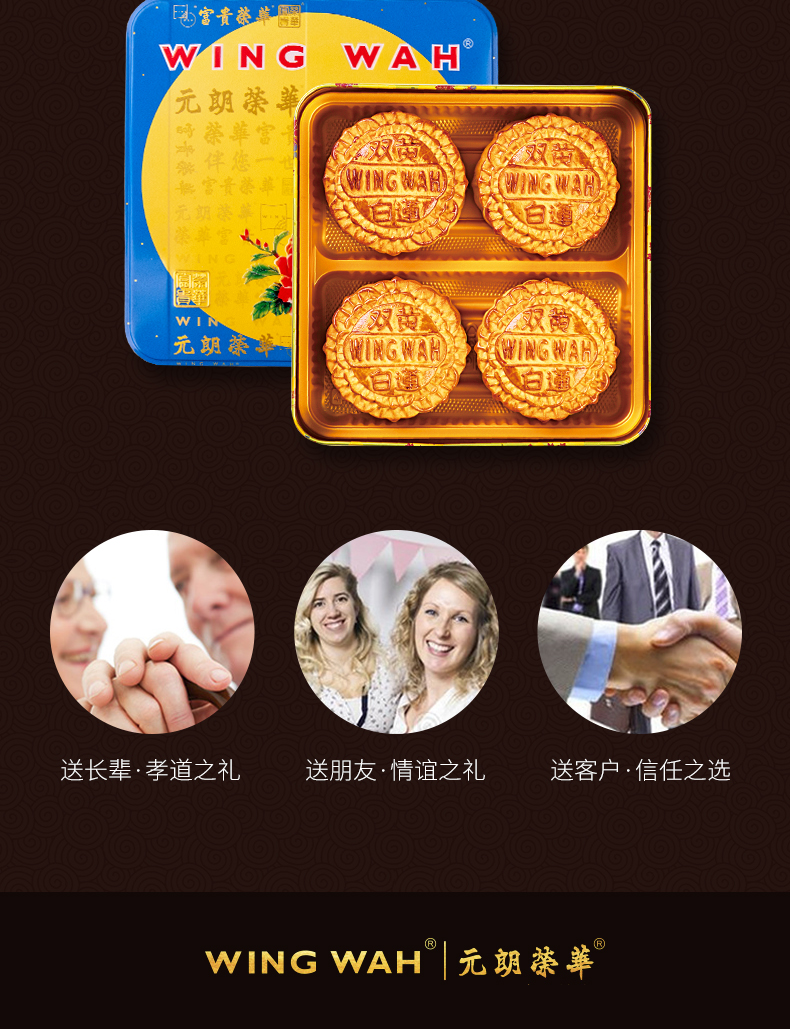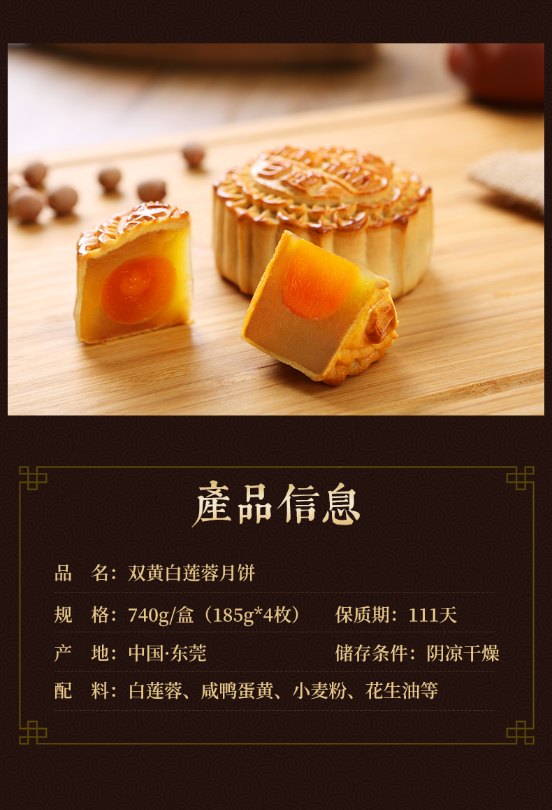 进口港版 荣华 双黄白莲蓉中秋月饼礼盒740g(4枚装)