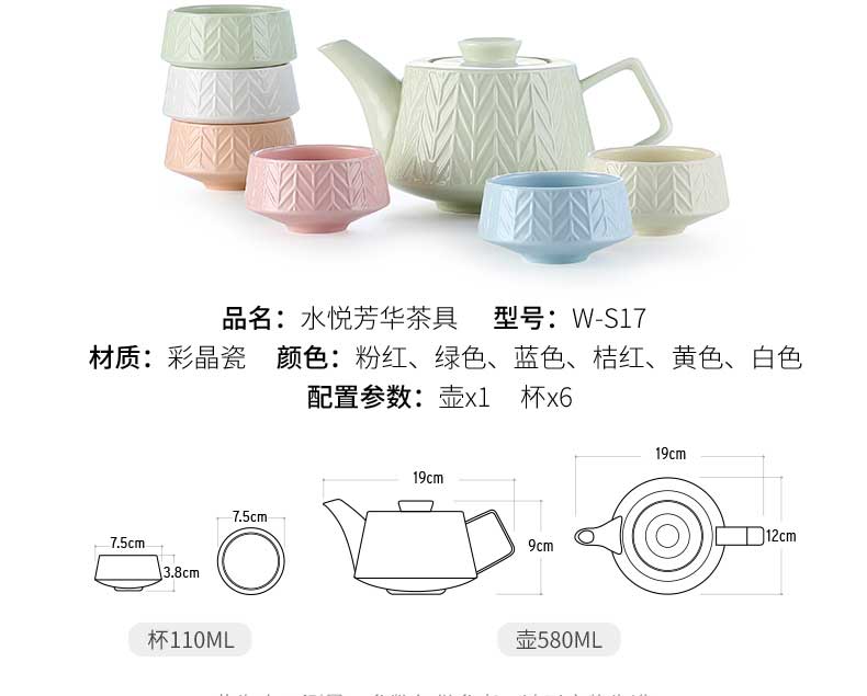 【授权商品】唯都水悦芳华茶具套装W-S17 一壶六杯7件套套装居家日用喝茶陶瓷茶具