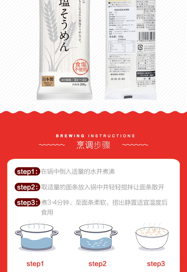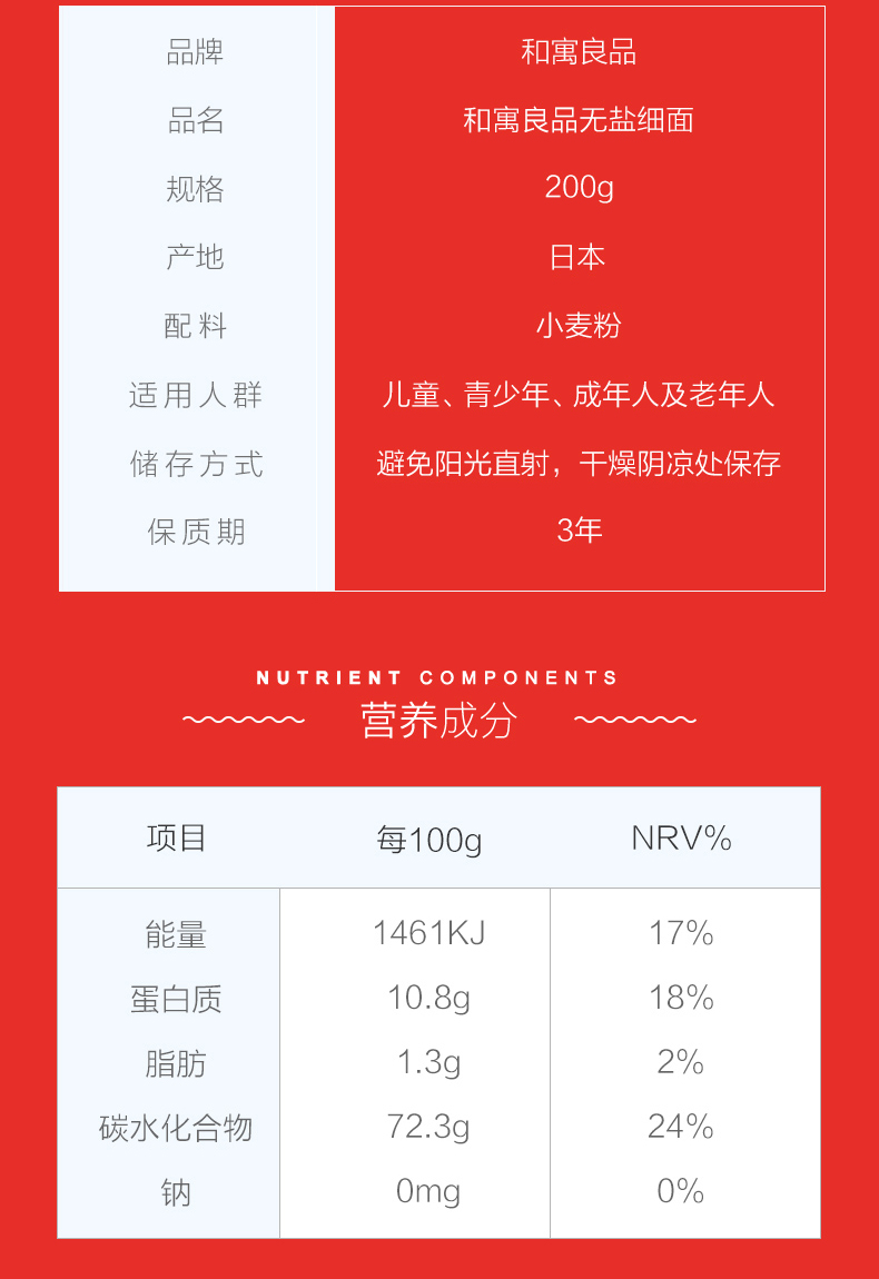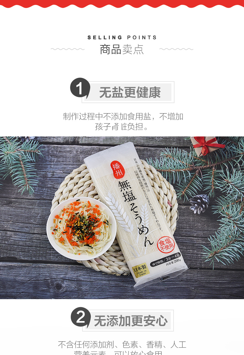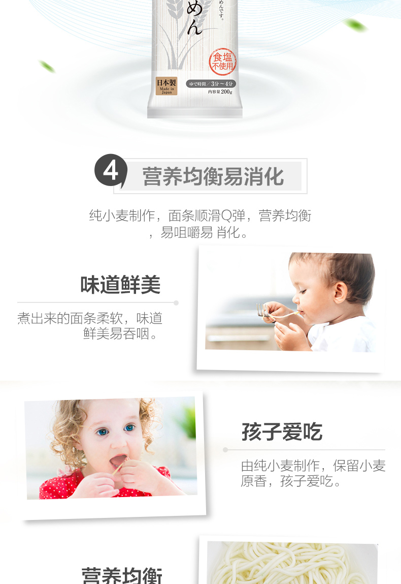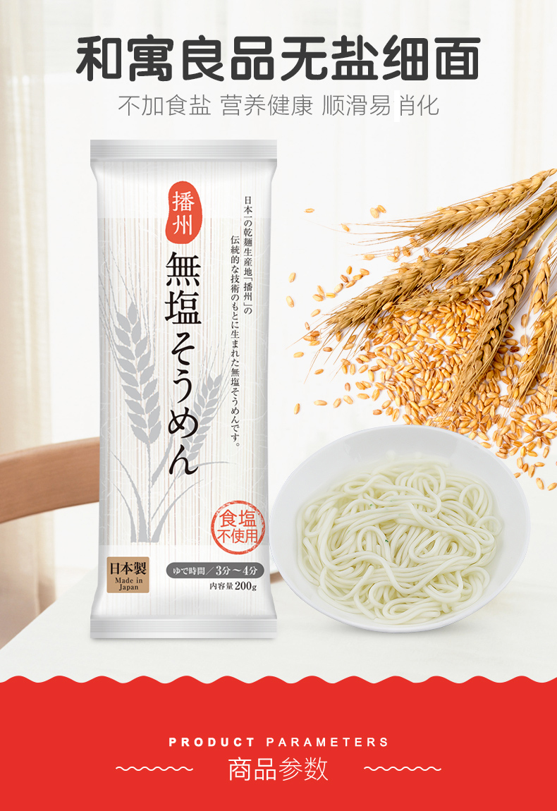 日本进口和寓良品无盐细面宝宝辅食面婴儿童营养挂面条6个月200g
