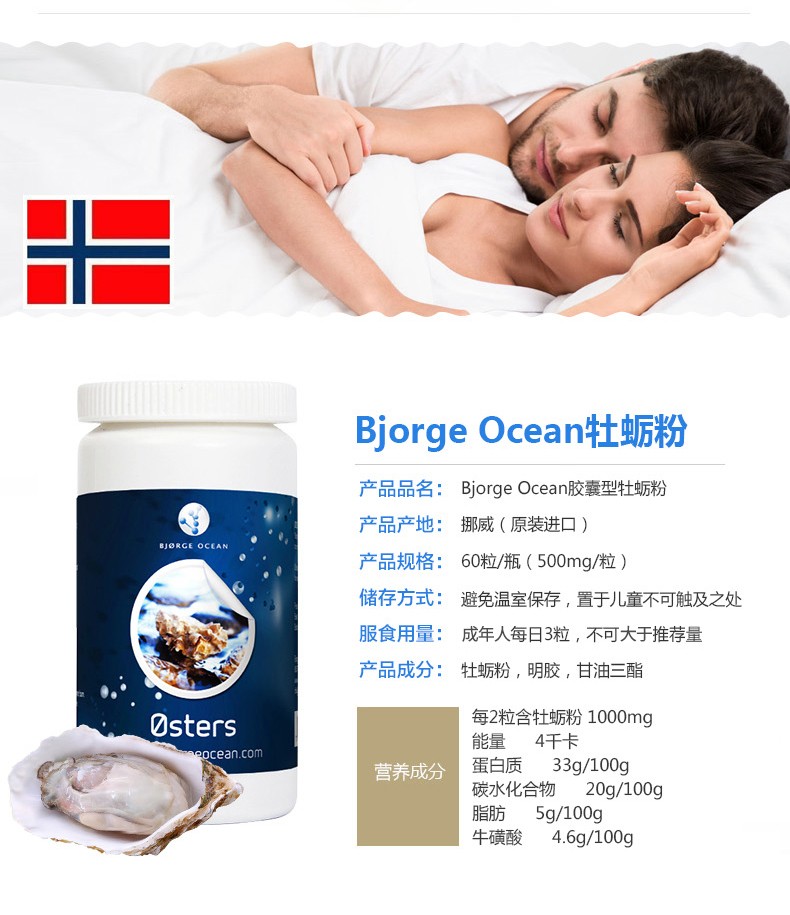 挪威Bjorge Ocean牡蛎粉肽益肾健脾深海牡蛎片精华胶囊60粒