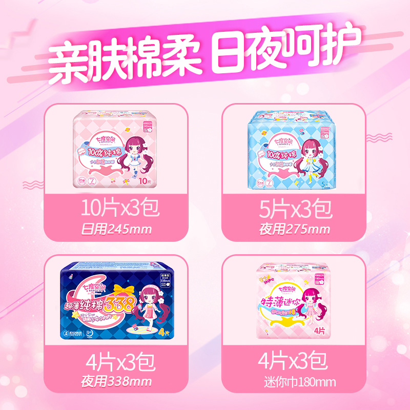 七度空间卫生巾整箱棉柔少女日夜用组合姨妈巾69片日用夜用迷你装
