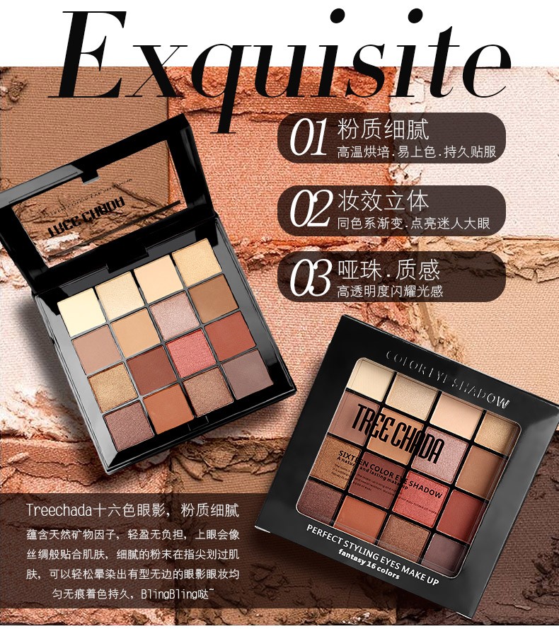泰国 ins超火 初学者 TREECHADA 16色眼影+TREECHADA 素颜霜+TREECHADA玫瑰唇膜(组合装,各一盒)