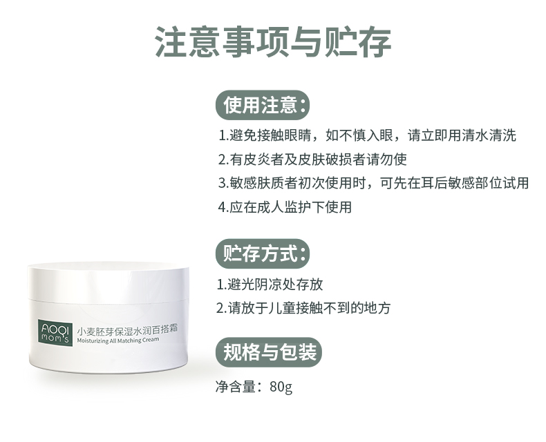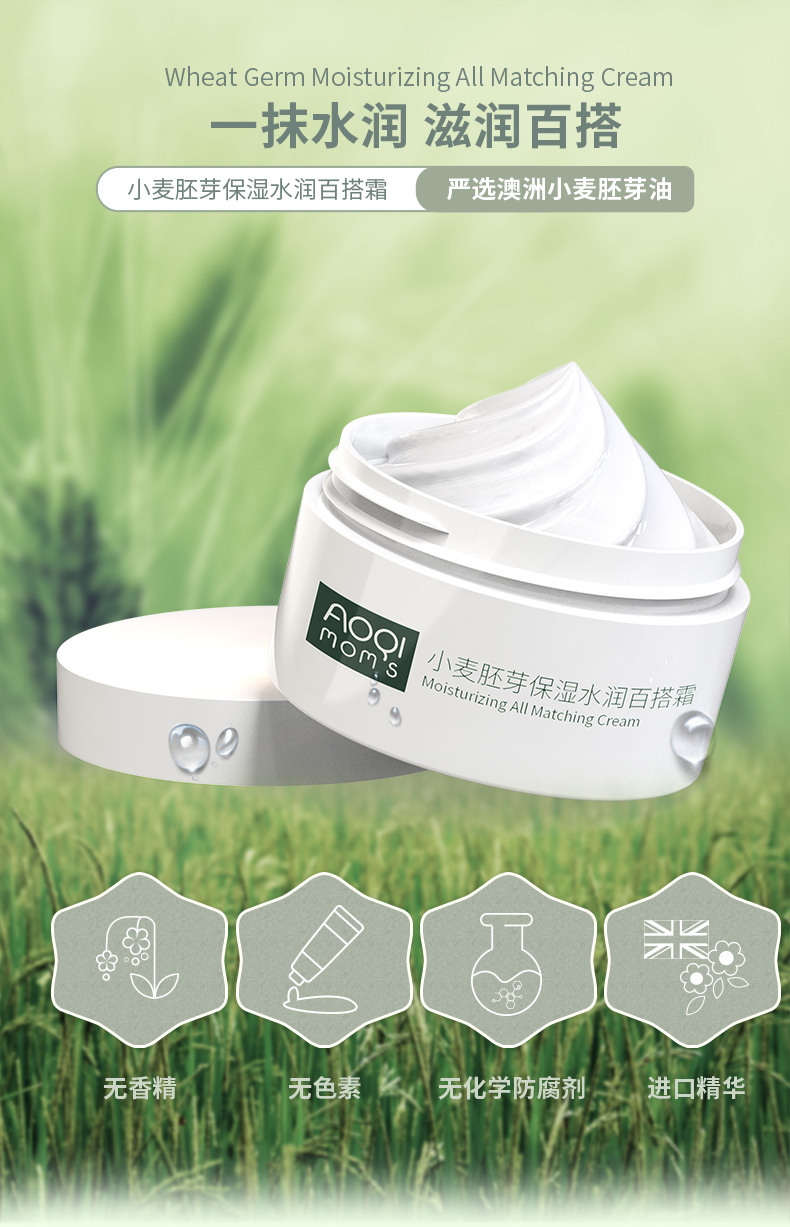 澳祺小麦胚芽保湿水润百搭面霜孕妇嫩肤护肤品乳液补水敏感肌适用