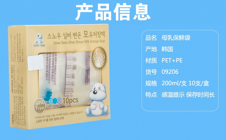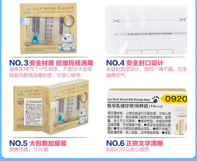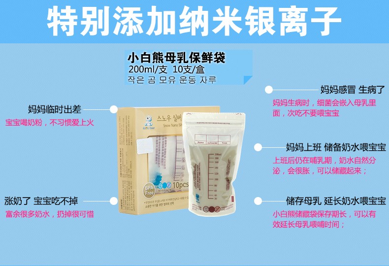 小白熊纳米银母乳储存袋奶水保鲜袋10片装09206