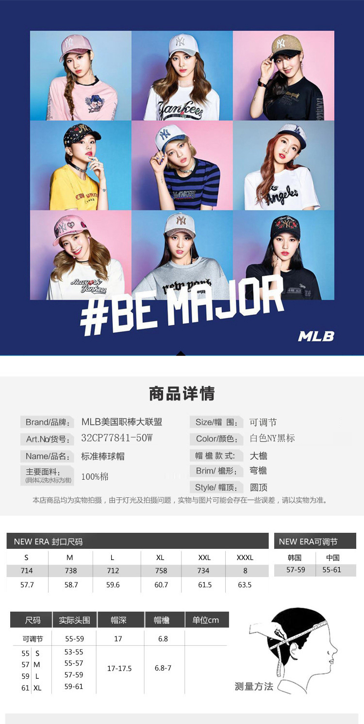 MLB美职棒棒球帽 白色黑标软顶正面小洋基NY 32CP77841-50W