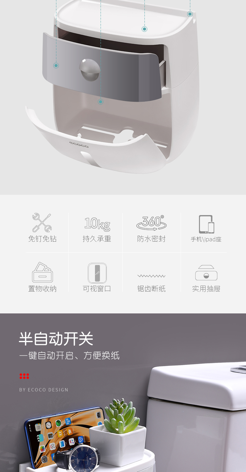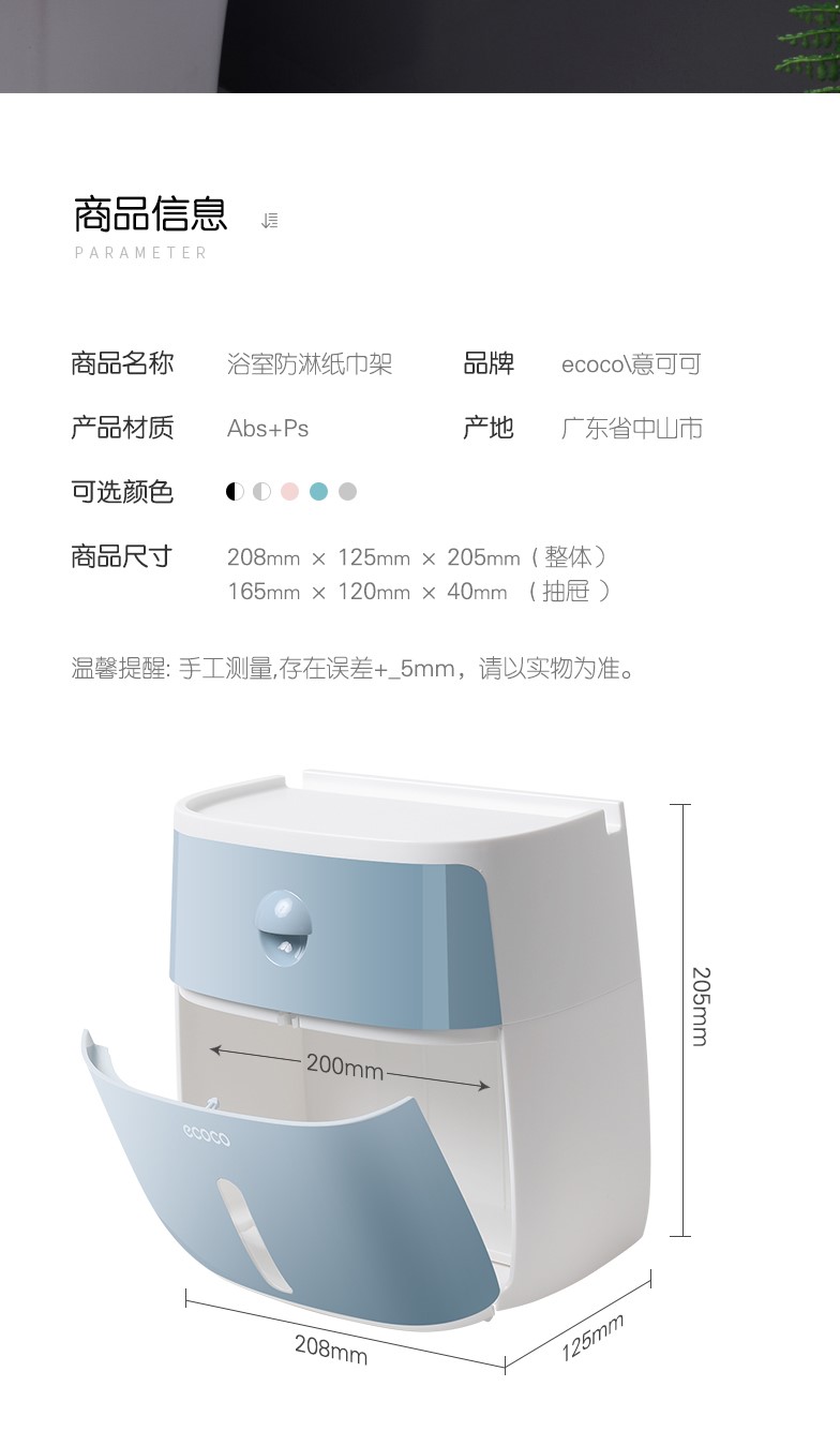 您所在的位置:首页 > 家居日用  > 收纳用品 > 收纳箱/盒  > ecoco/意可可 卫生纸盒卫生间纸巾置物架厕所家用免打孔挂壁式创意抽纸盒卷纸筒 粉色