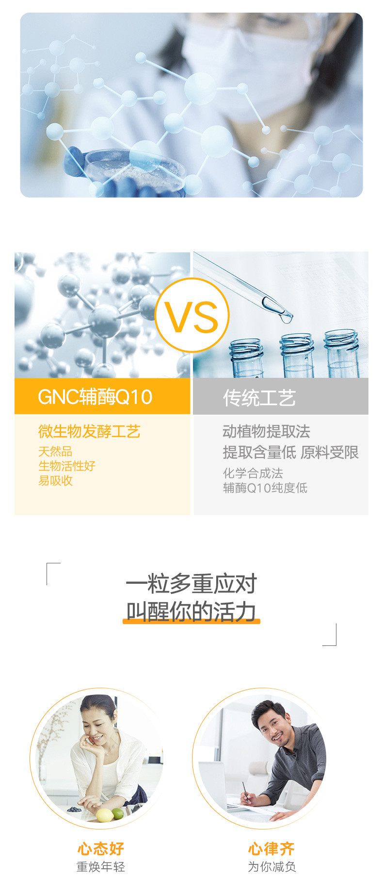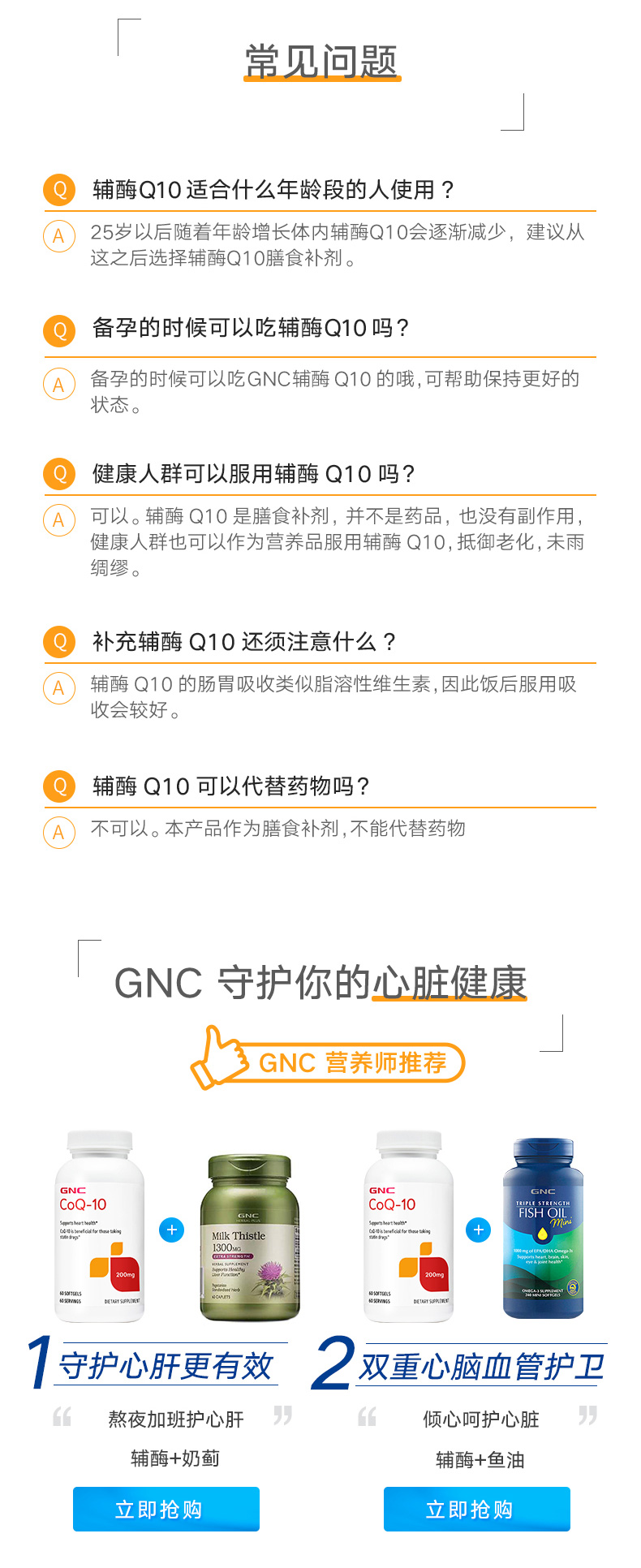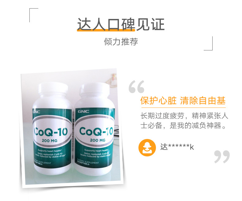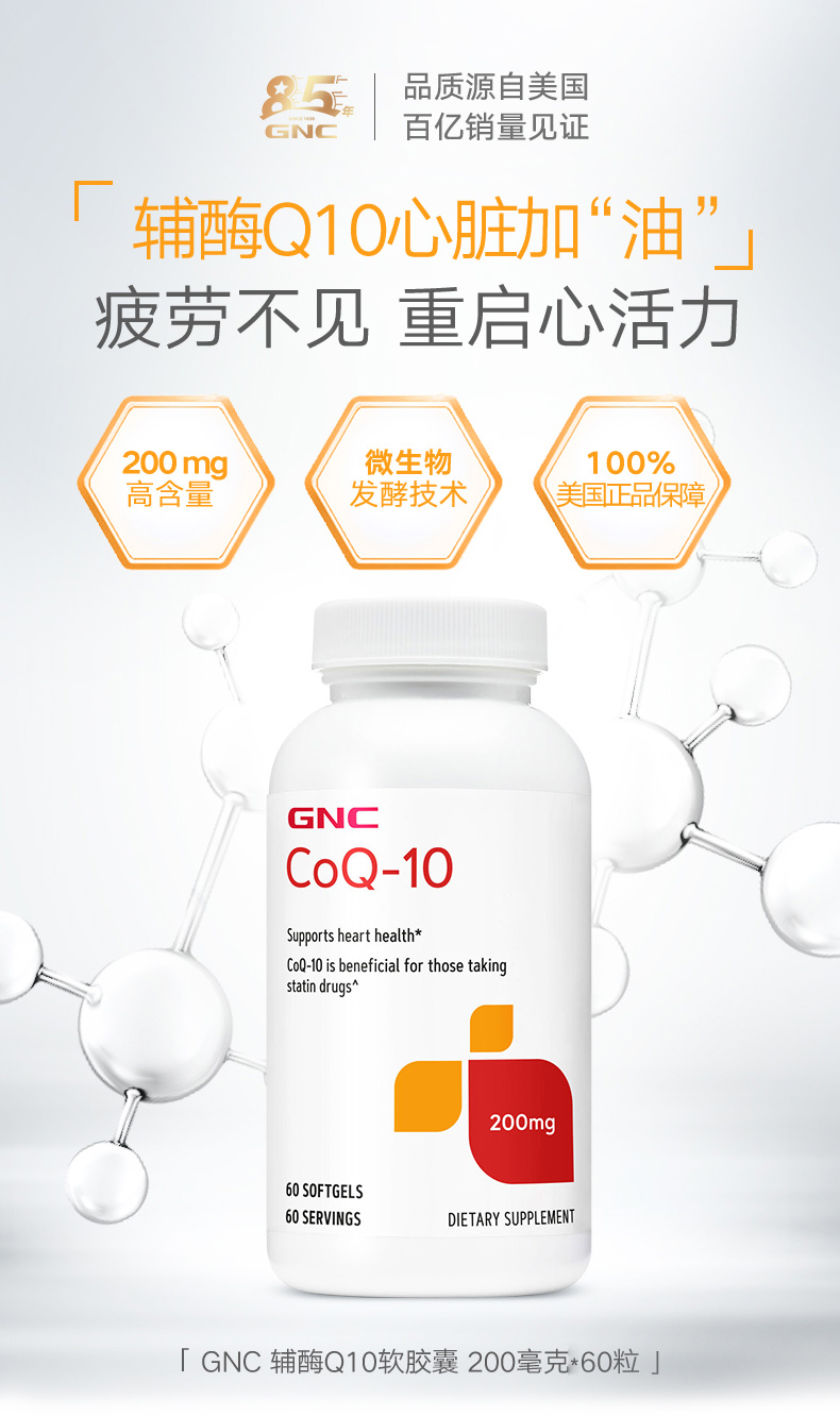 美国GNC健安喜辅酶Q10软胶囊200mg*60粒 辅酶