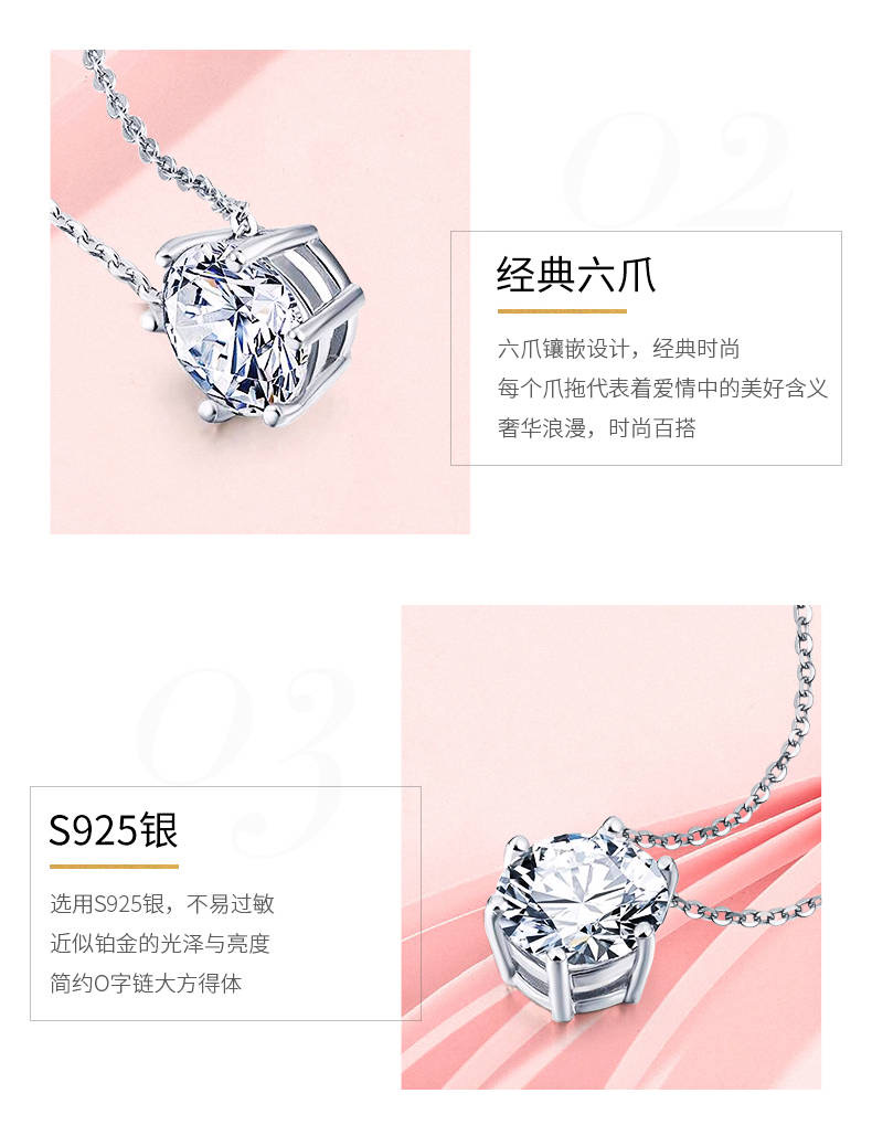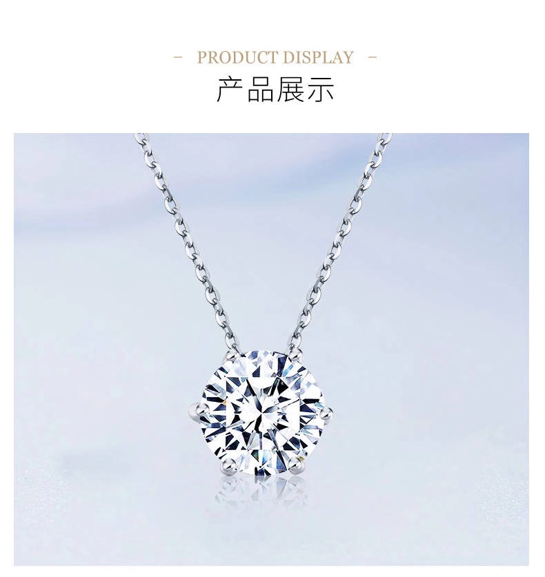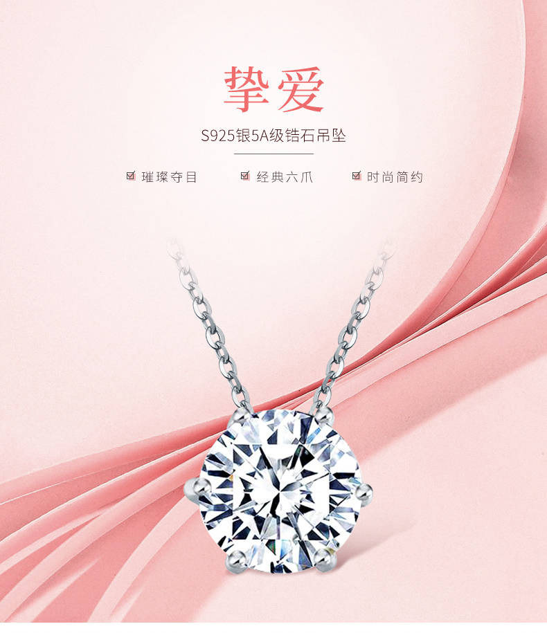 四福珠宝 S925纯银5A锆石吊坠六爪吊坠 简约百搭女款项链送链子