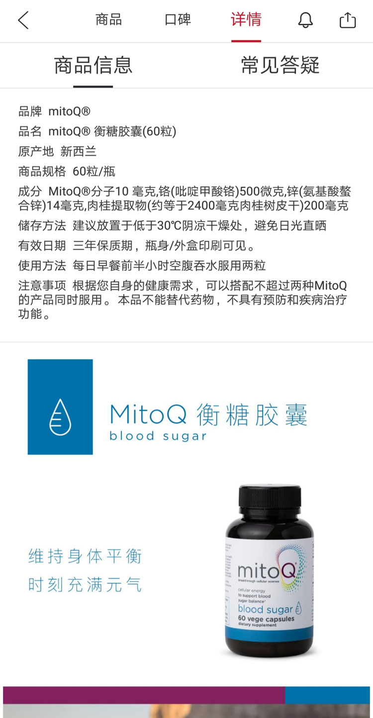新西兰 MitoQ 衡糖胶囊(60粒)新包装