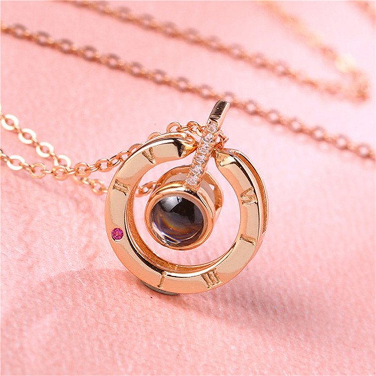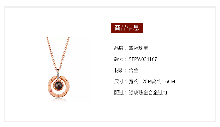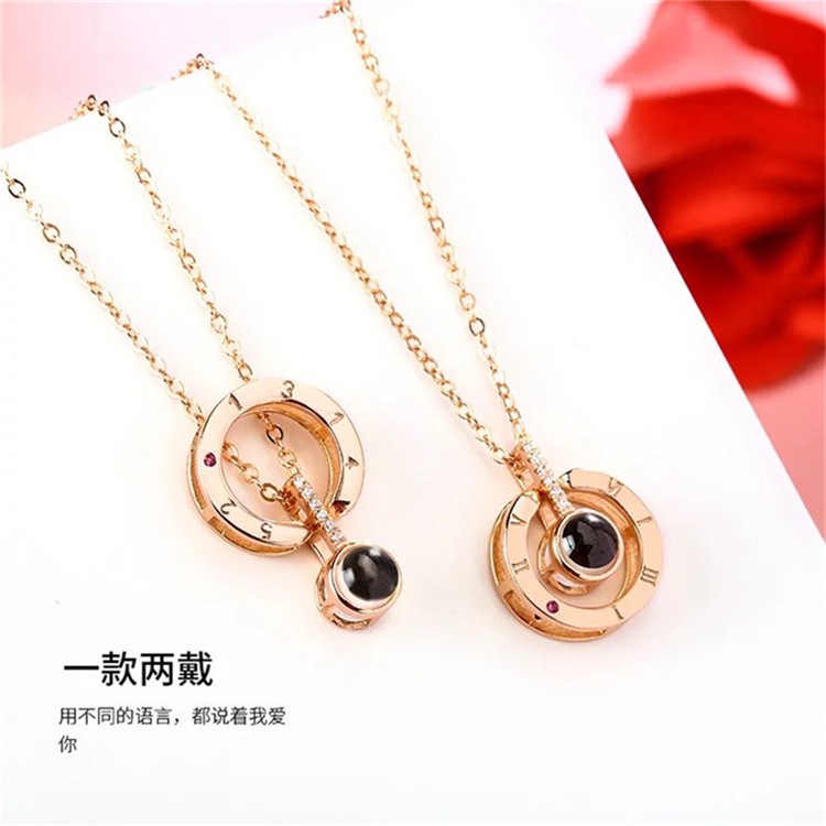 四福珠宝 创意微雕100种语言“我爱你”合金项链吊坠