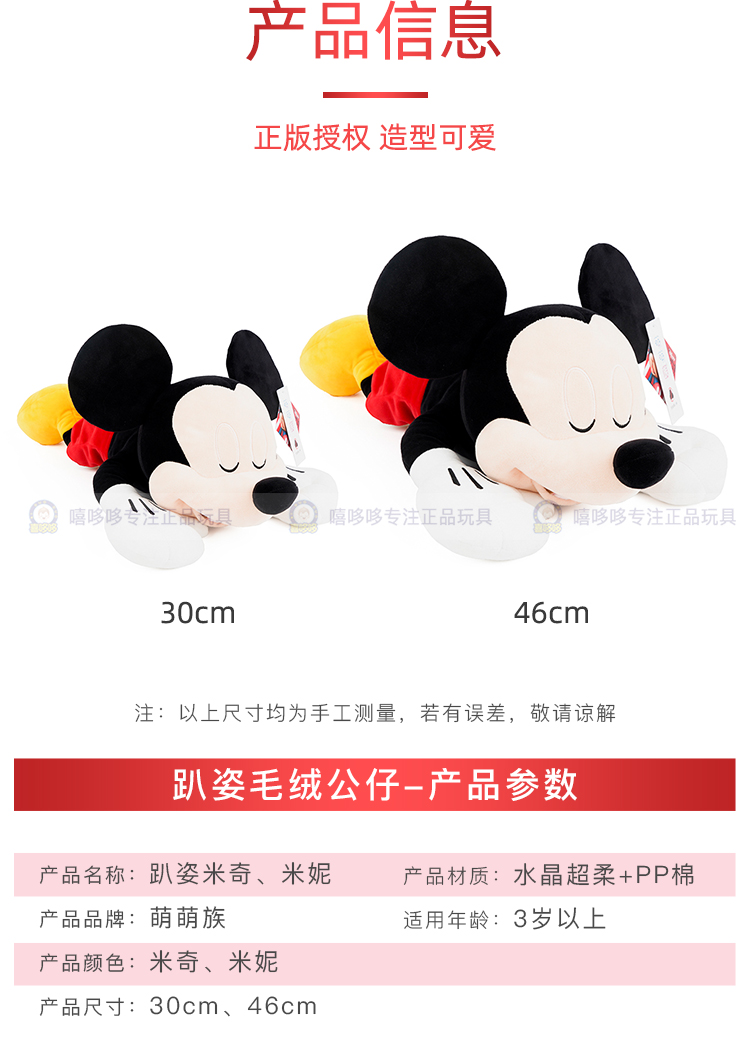 迪士尼趴姿毛绒公仔玩具结婚压床汽车车饰 米奇趴姿 30cm