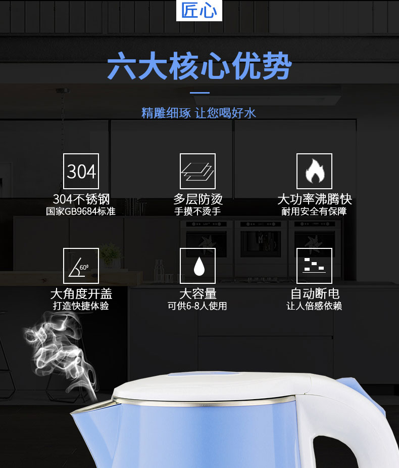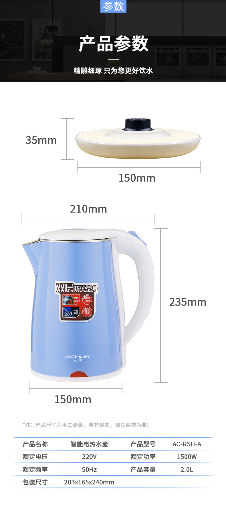 艾淳 (AICHUN)电水壶家用快速烧水壶不锈钢双层防烫电热水壶自动断电AC-RSH-A