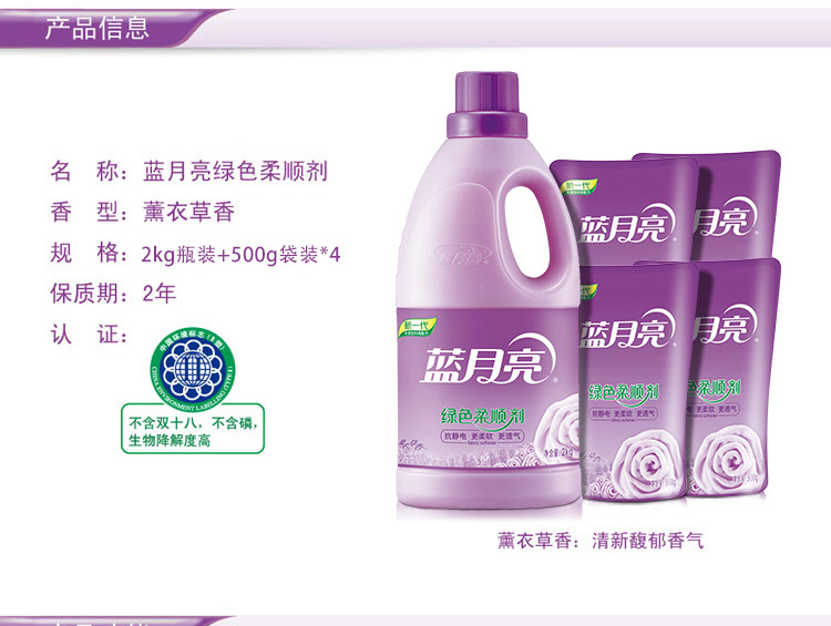 蓝月亮薰柔顺剂2kg+薰柔顺剂袋500g*4
