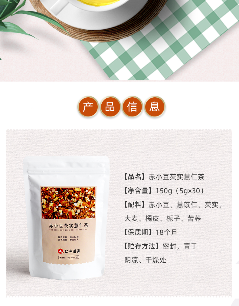 仁和 赤小豆芡实红薏仁茶红豆薏仁茶养生祛湿茶5g*30袋/盒