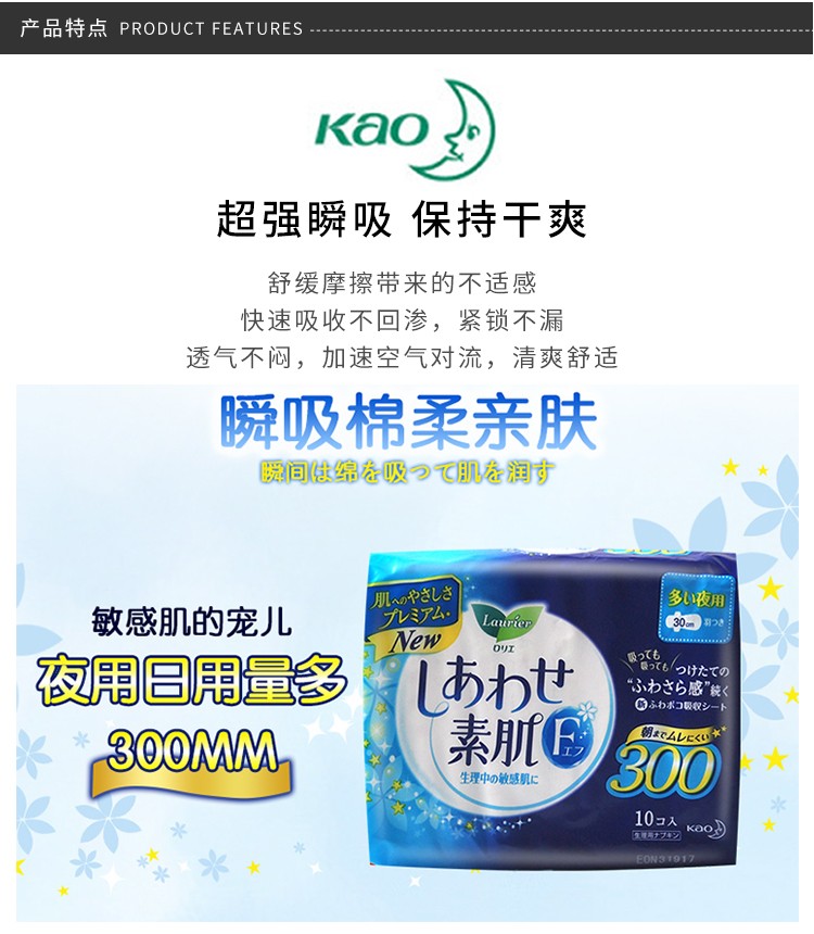 日本花王卫生巾乐而雅F系列夜用30cm*10片