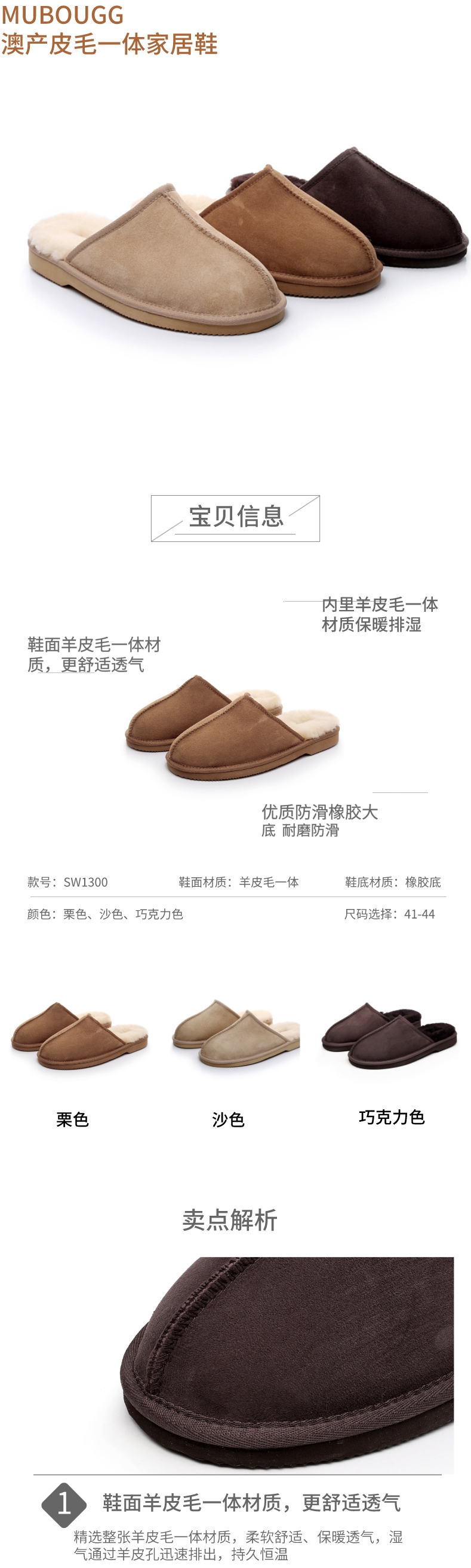【澳洲直邮】MUBOUGG澳产皮毛一体男士家居鞋SW1300(下单请备注颜色尺码41-44)