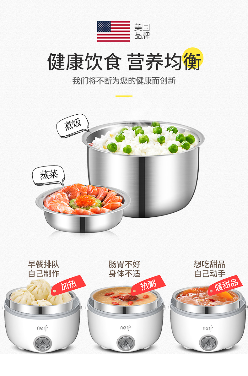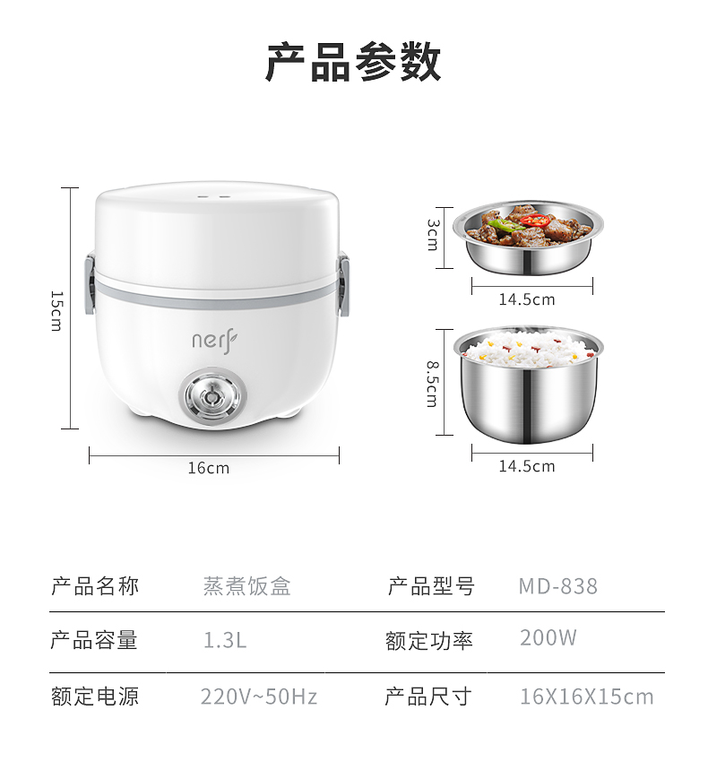 NERF拉尔弗蒸煮饭盒 电热饭盒MD-838