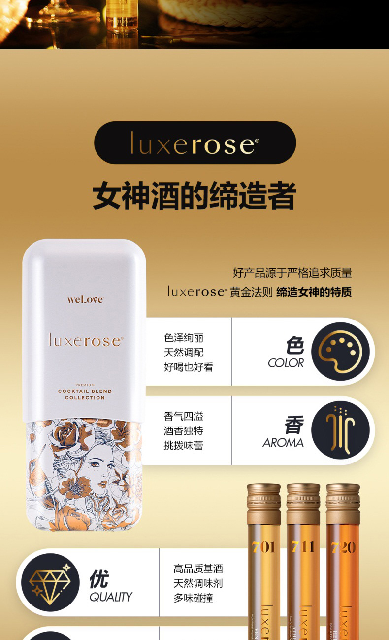 您所在的位置:首页 > 休闲食品  > 洋酒 > 鸡尾酒/预调酒  > Luxerose鸡尾酒女士白领微醺小资情调洋酒低度野餐聚会婚礼独处100ml*3