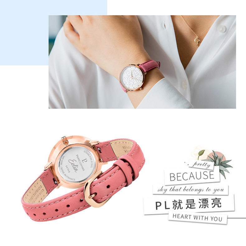 连尼亚(PIERRE LANNIER)法国女士手表 EOLIA浮雕系列 33mm莫奈花园时尚3D立体雕花小众石英女表PL-041K605