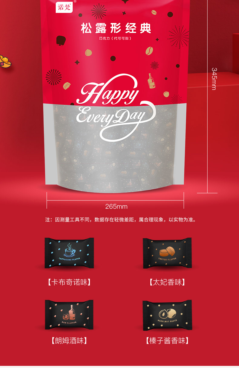 诺梵四口味松露巧克力礼袋装节日礼物500g/袋