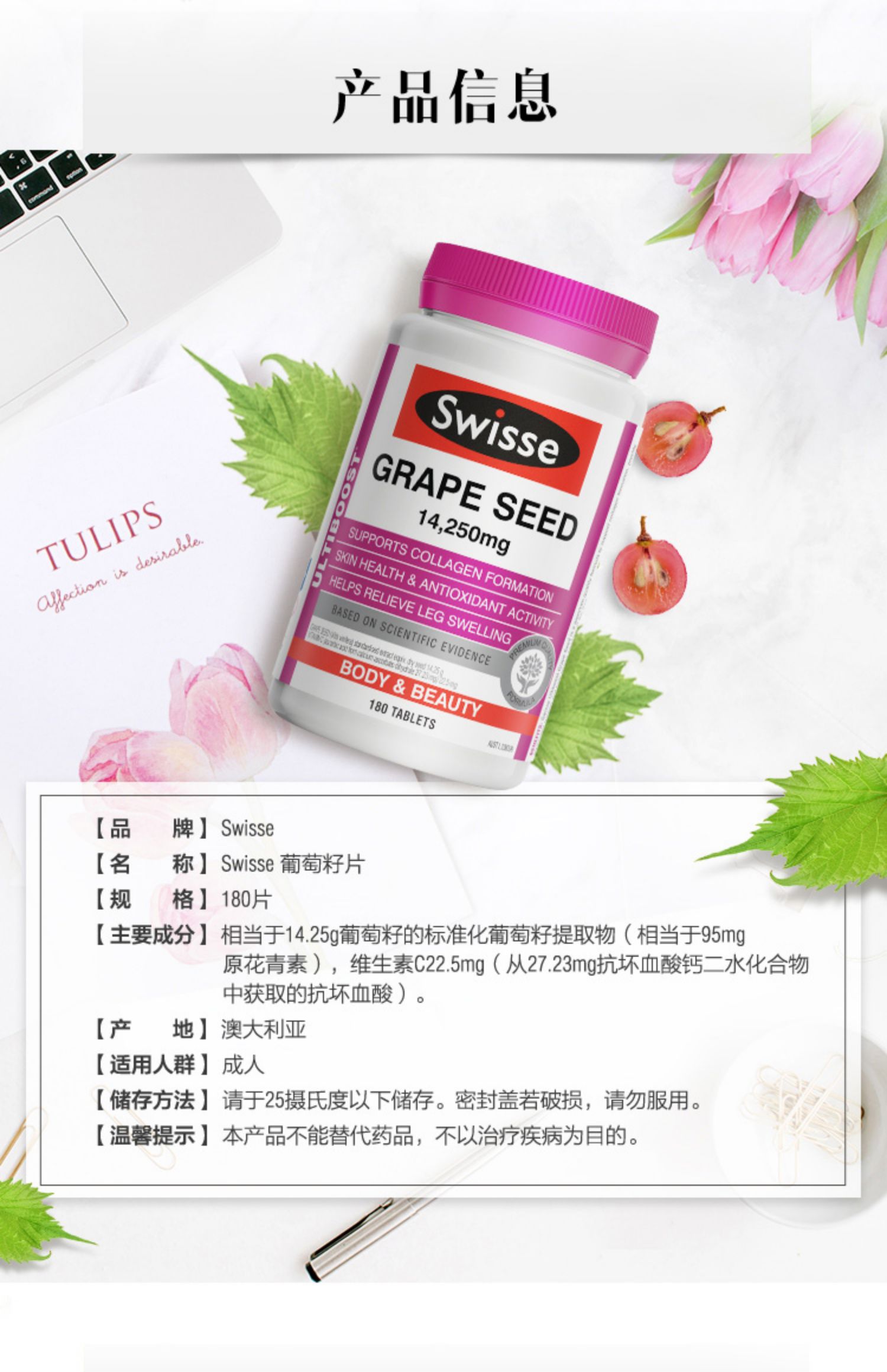 合生元版澳洲Swisse葡萄籽精华片14250mg 180片
