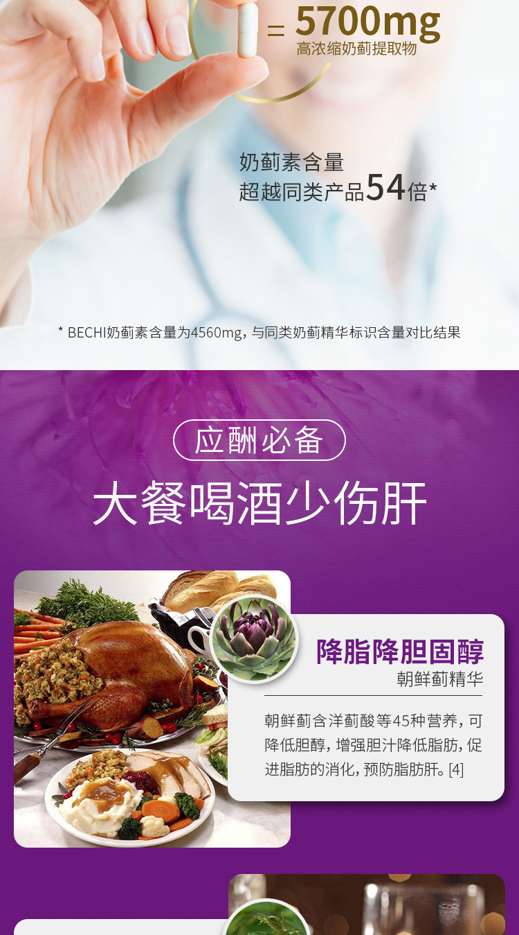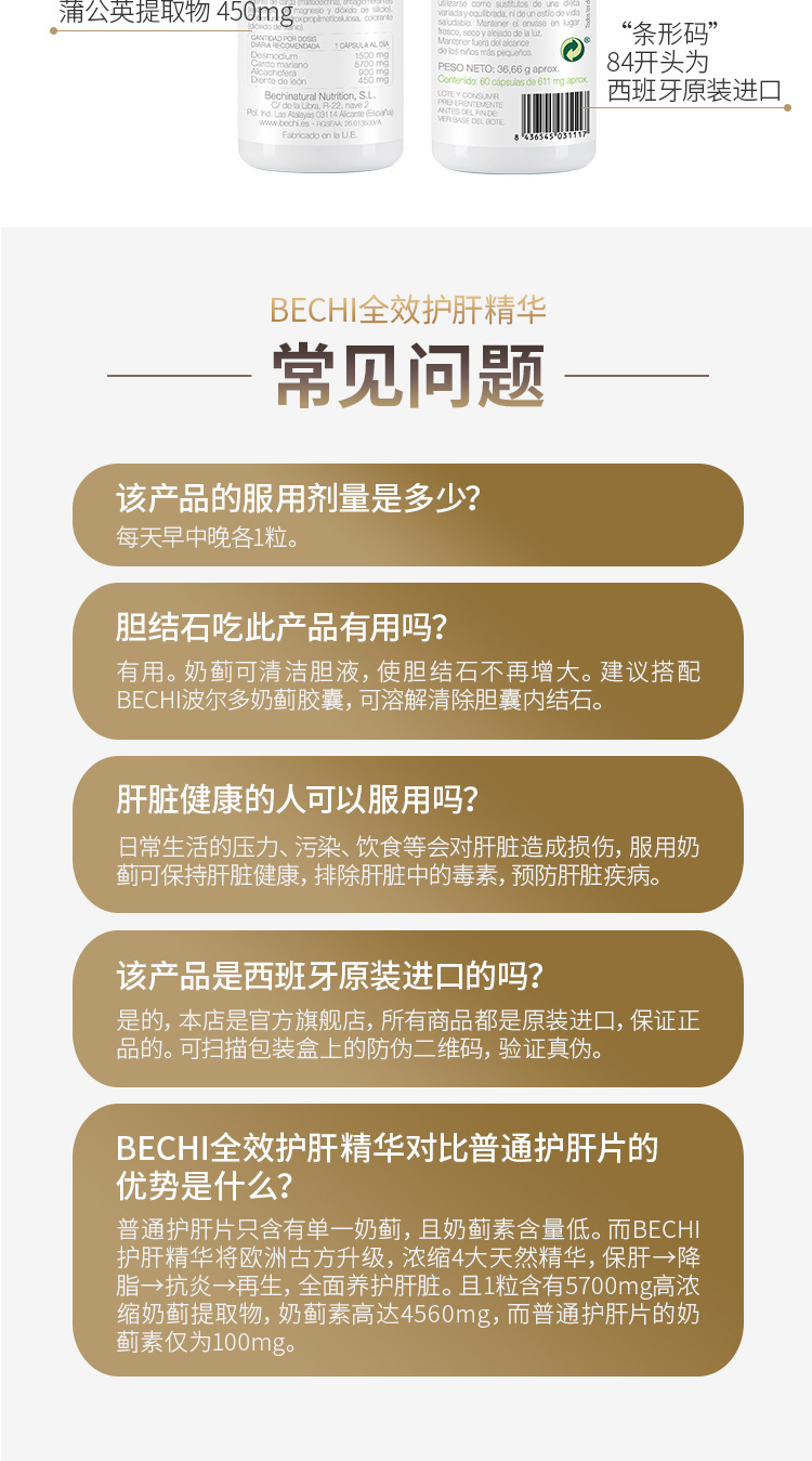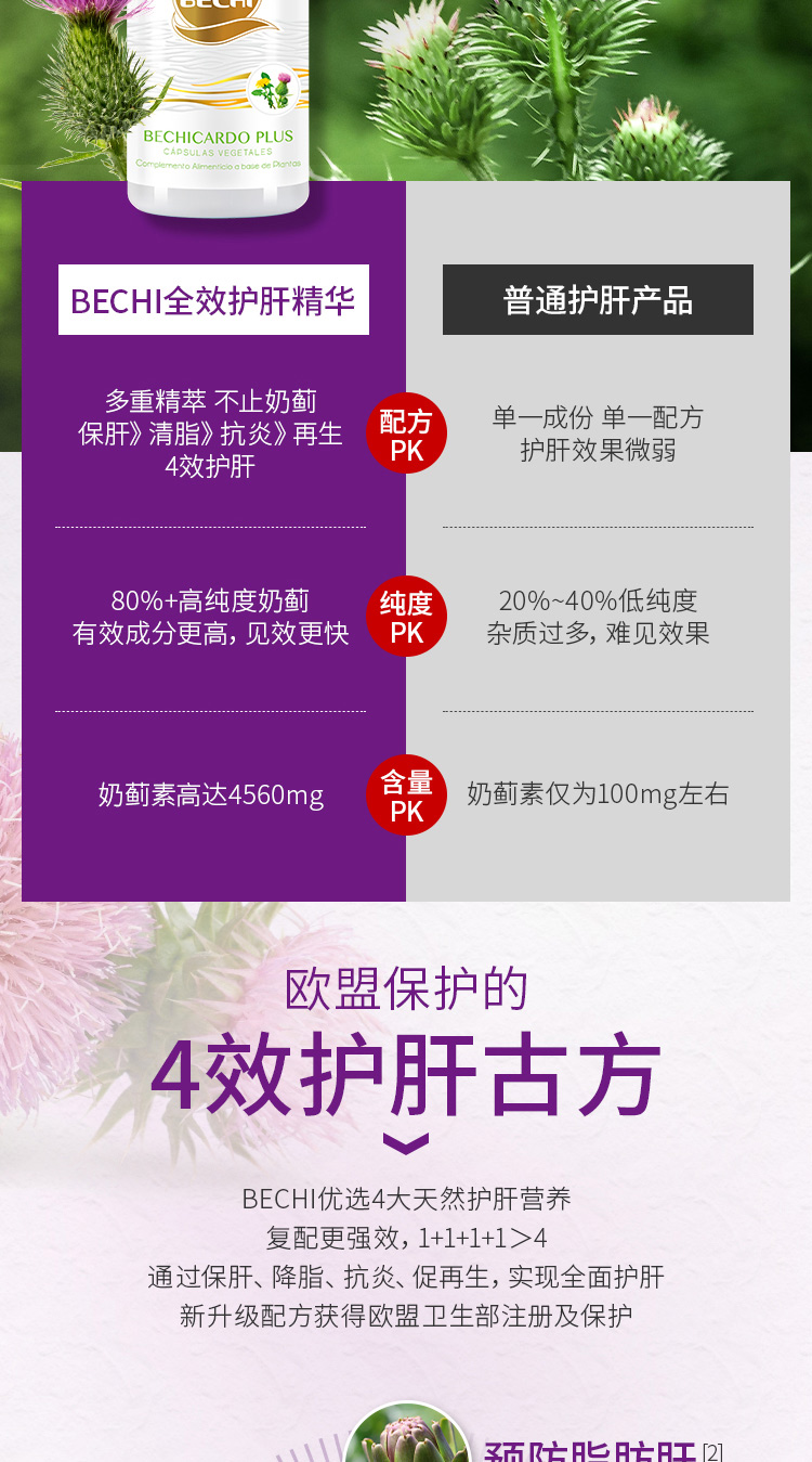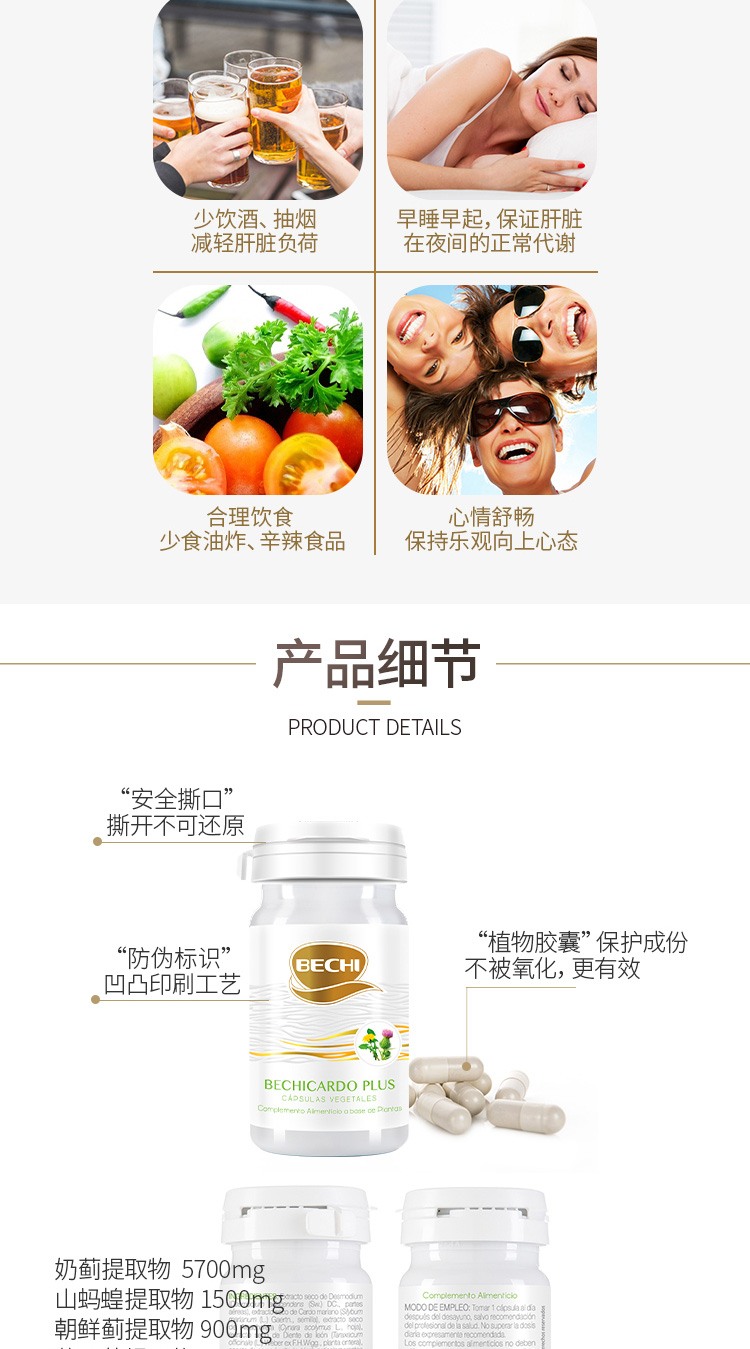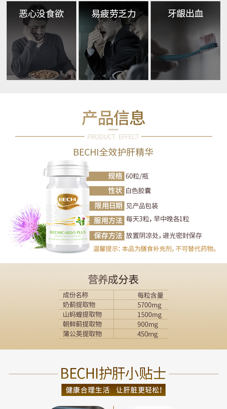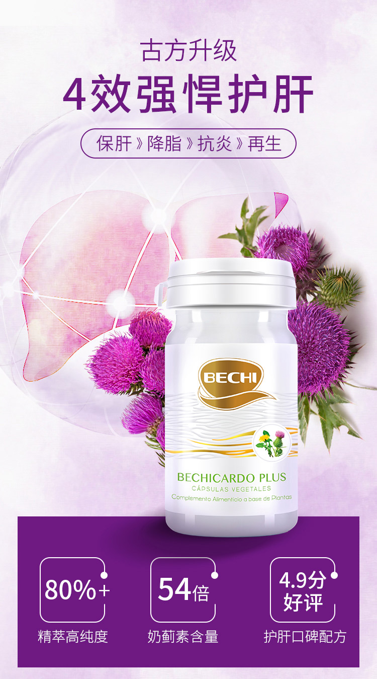【授权商品】西班牙BECHI贝琪水飞蓟素片奶蓟片水飞蓟四效强悍护肝胶囊60粒/罐