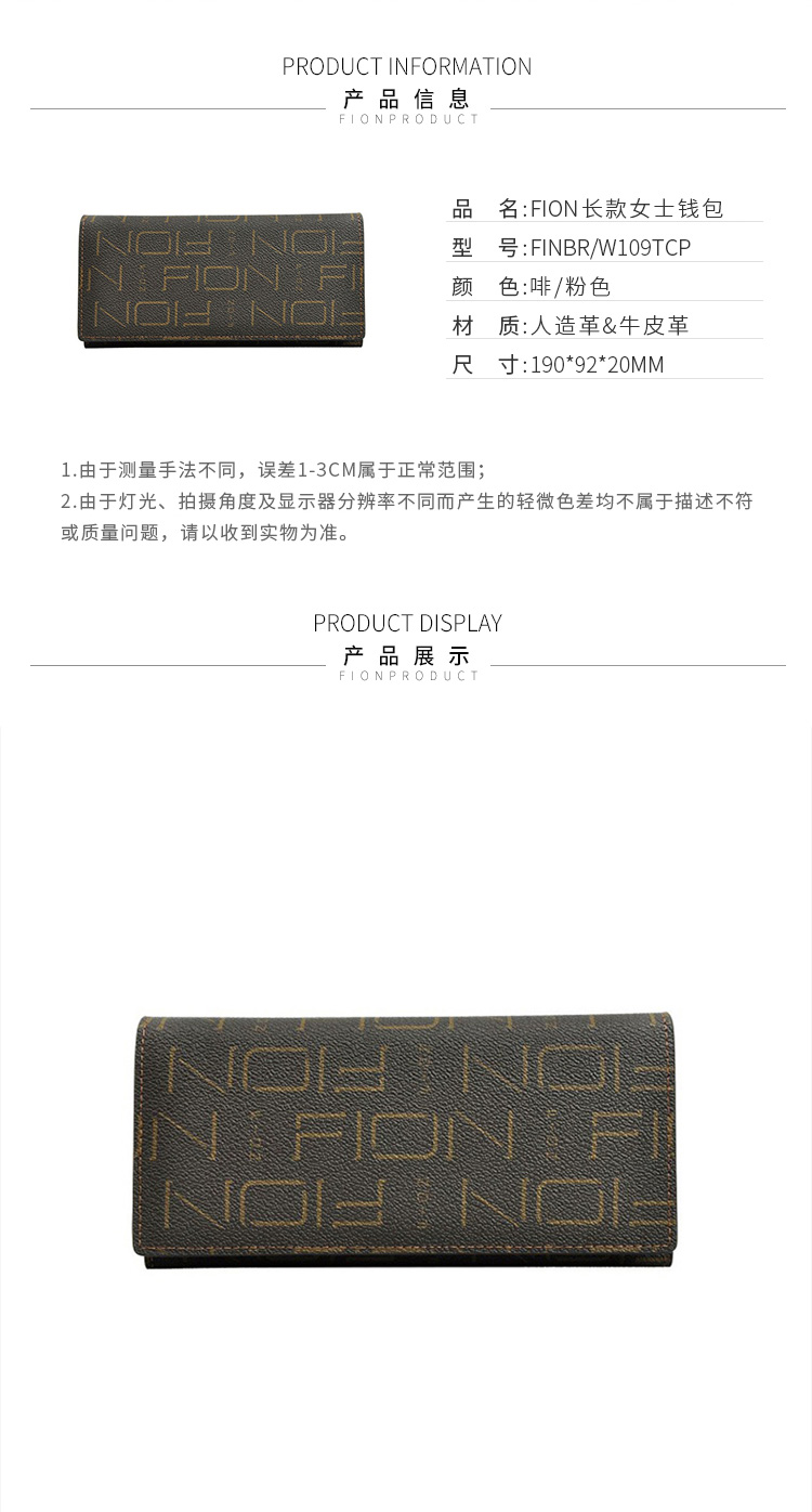您所在的位置:首页 > 服饰箱包  > 潮流女包 > 钱包  > FION 菲安妮长款咖啡粉色两折钱夹女士钱包FINBRW109TCP