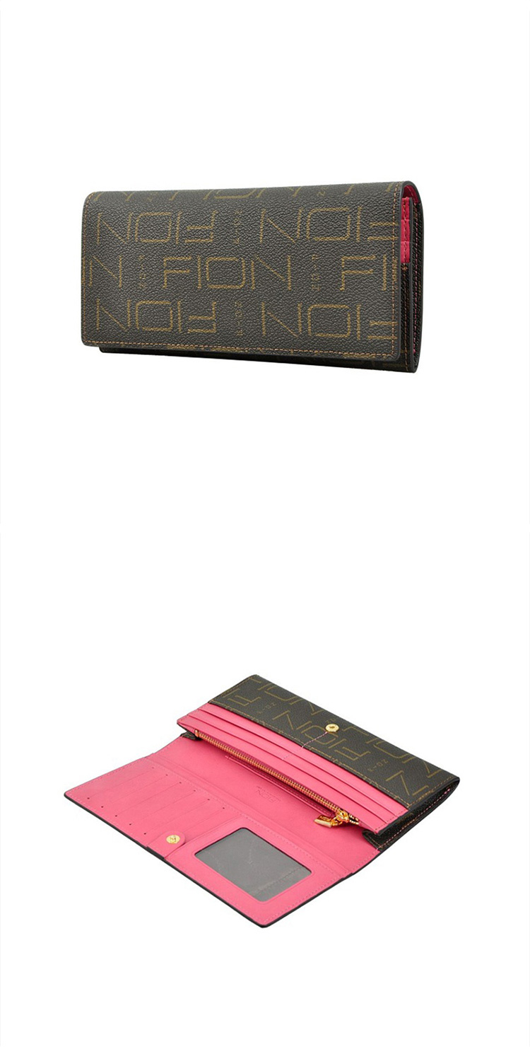 FION 菲安妮长款咖啡粉色两折钱夹女士钱包FINBRW109TCP