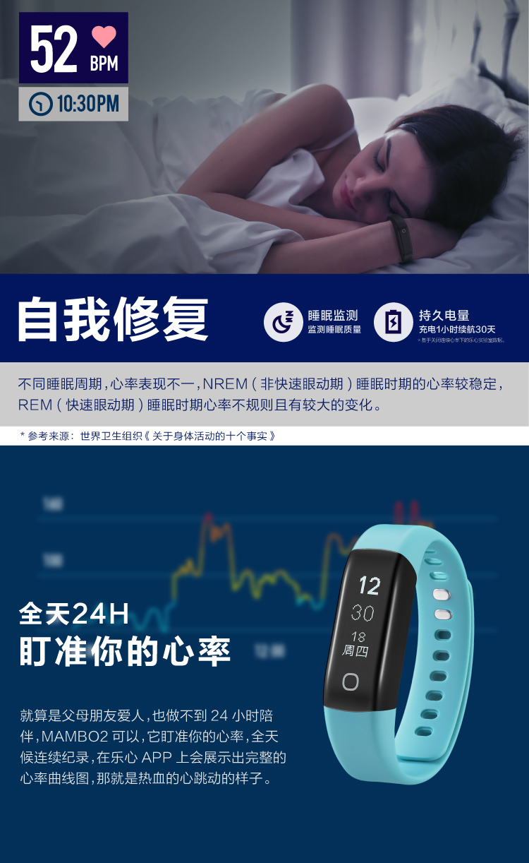 【授权商品】中国乐心手环mambo2深海蓝