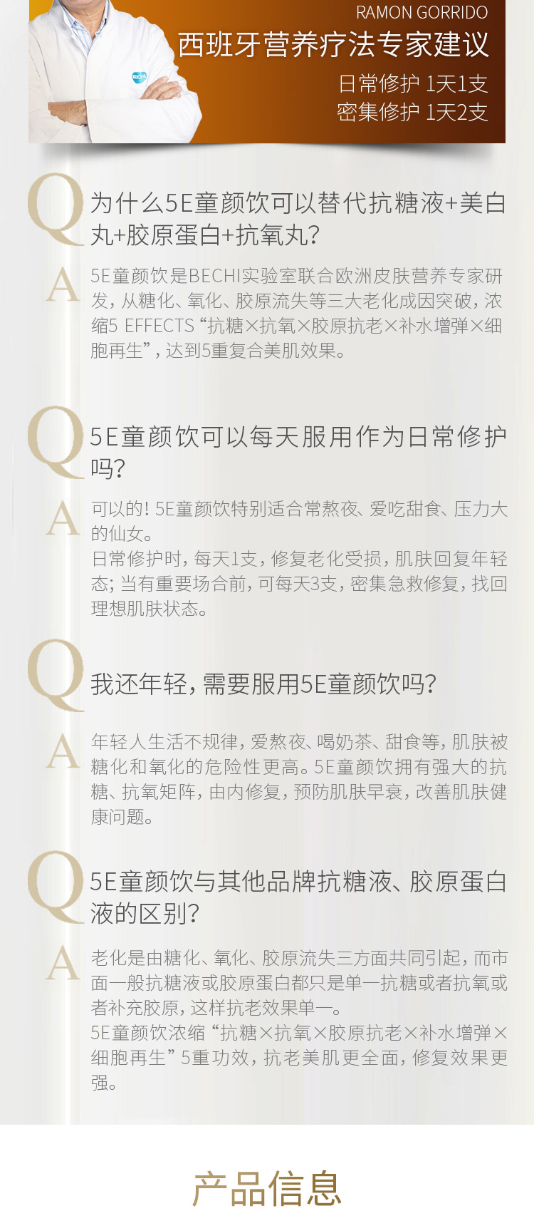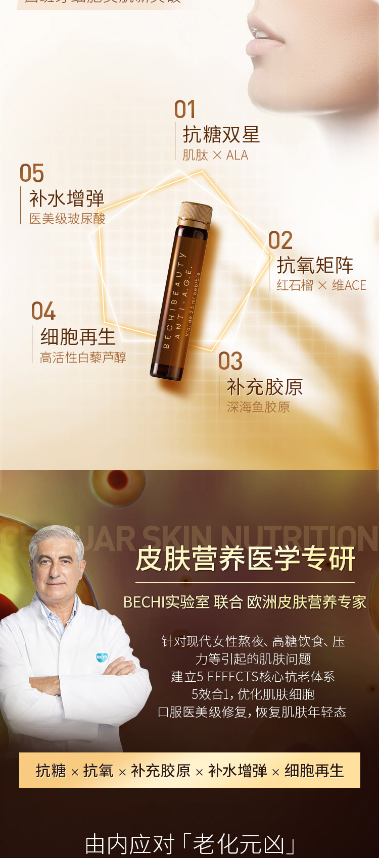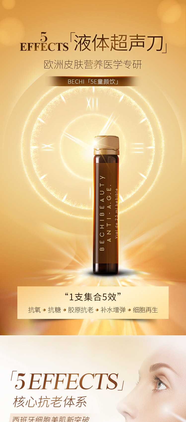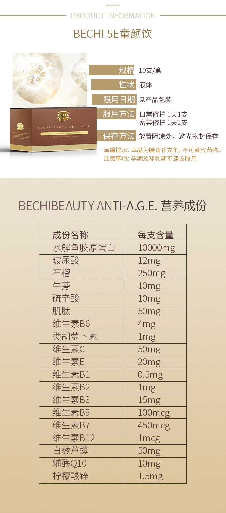 西班牙BECHI贝琪童颜饮 胶原蛋白肽口服液 硫辛酸NAD 轻松喝出少女肌 10支/盒
