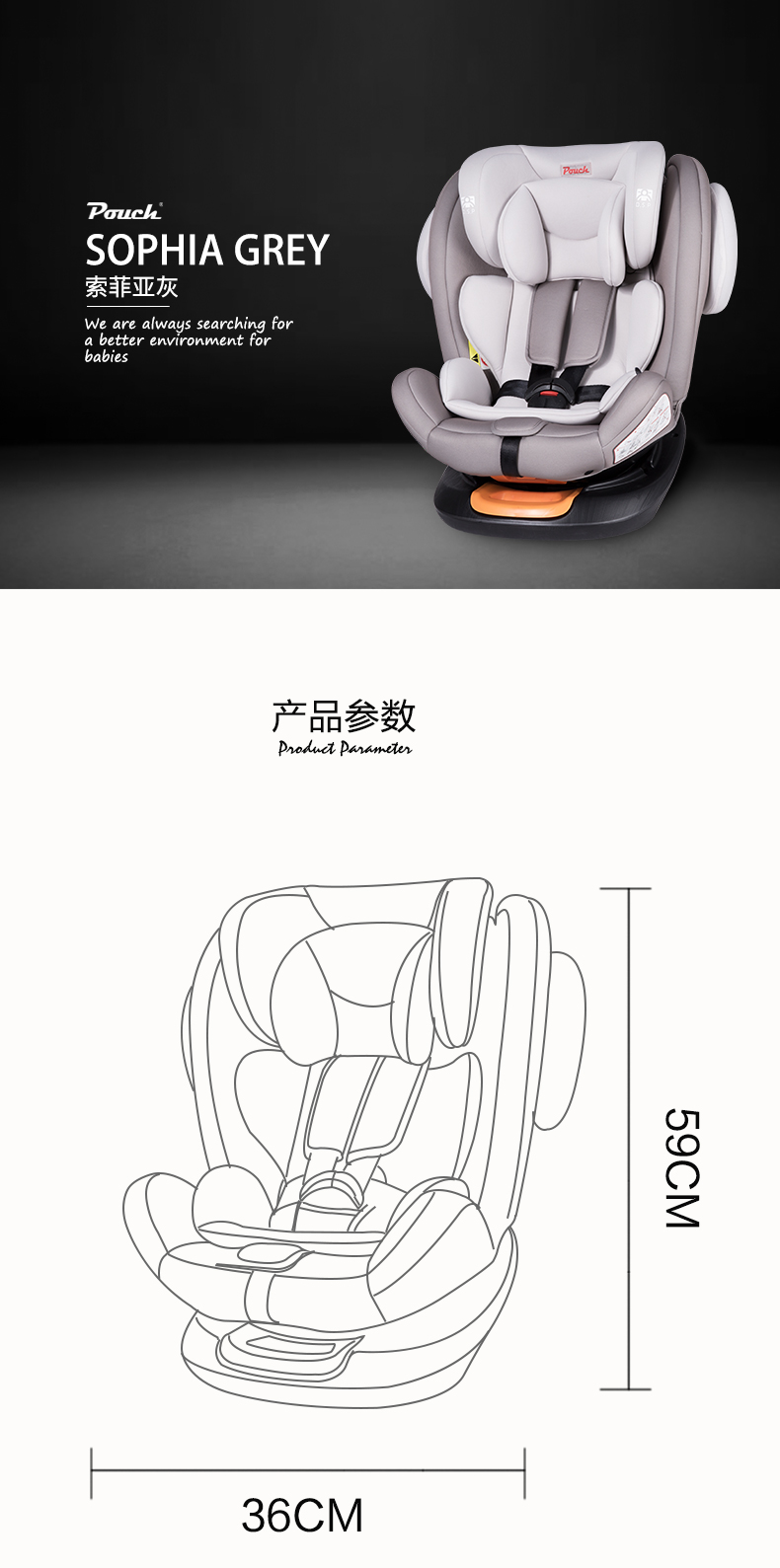 Pouch安全座椅360度旋转ISOFIX接口0-12岁KS19-Ⅲ 米妮亚黄