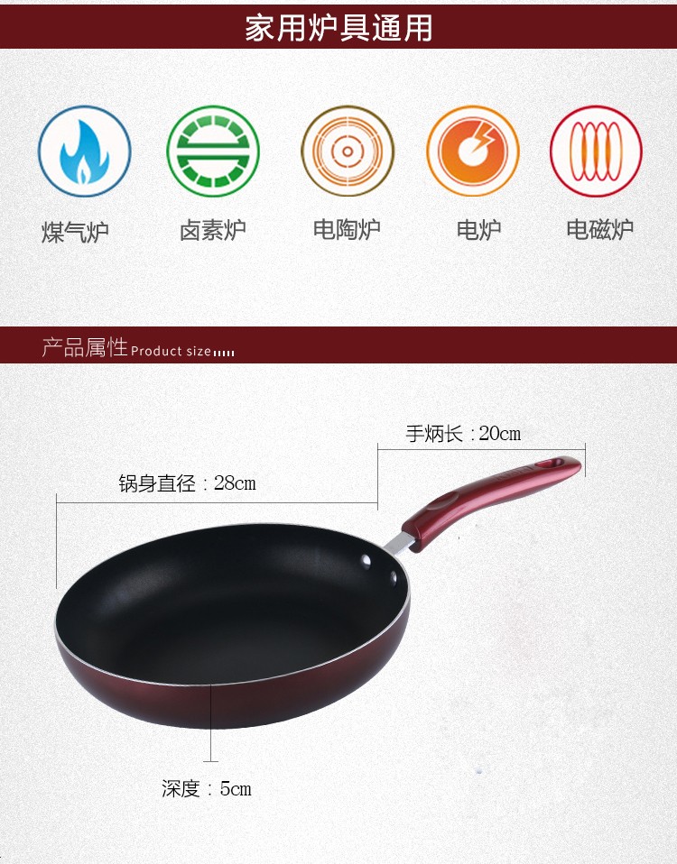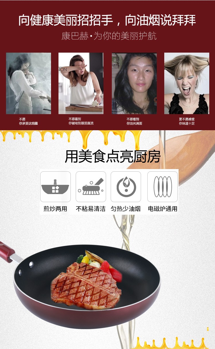 【授权商品】德国康巴赫炫彩28cm煎锅无烟锅不粘煎锅明火电磁炉通用煎锅无锅盖