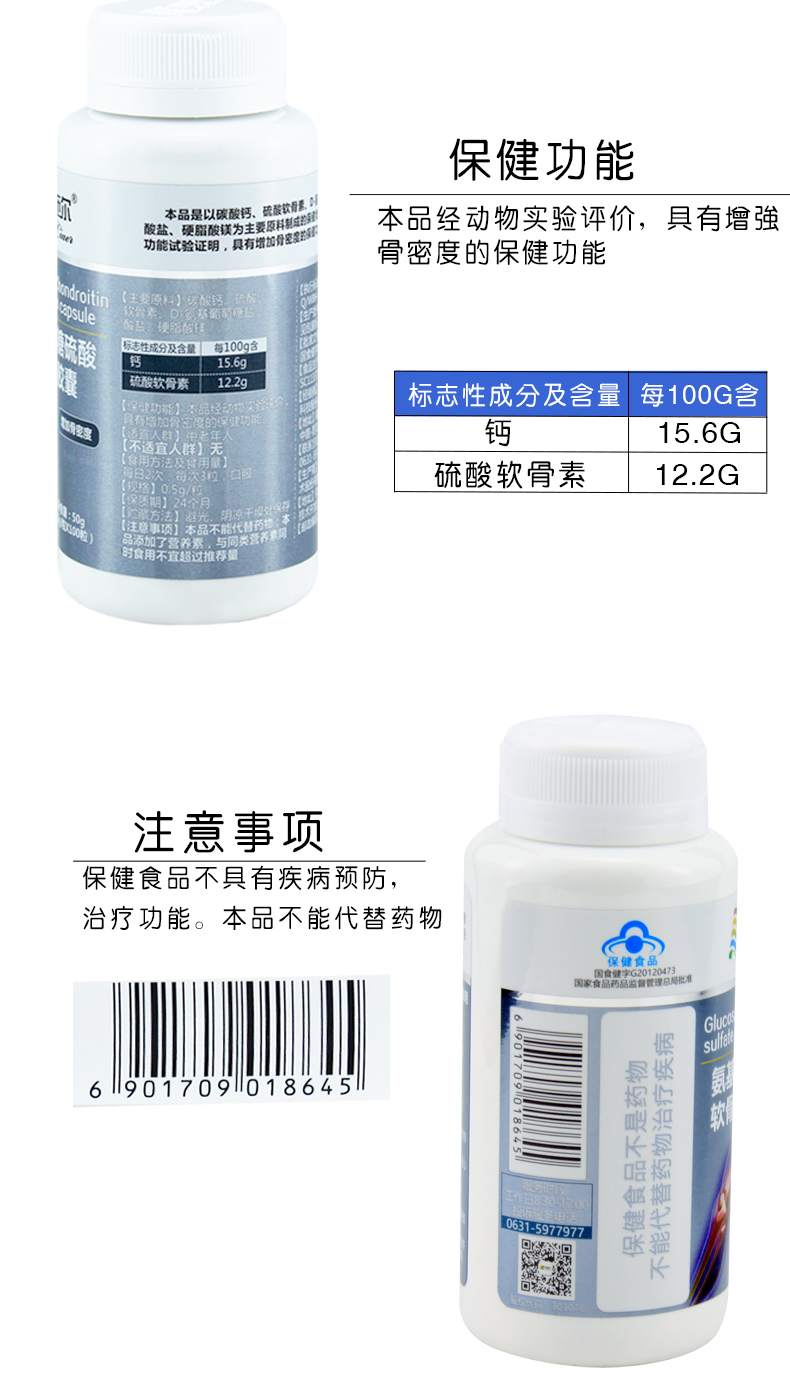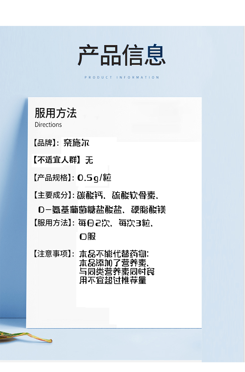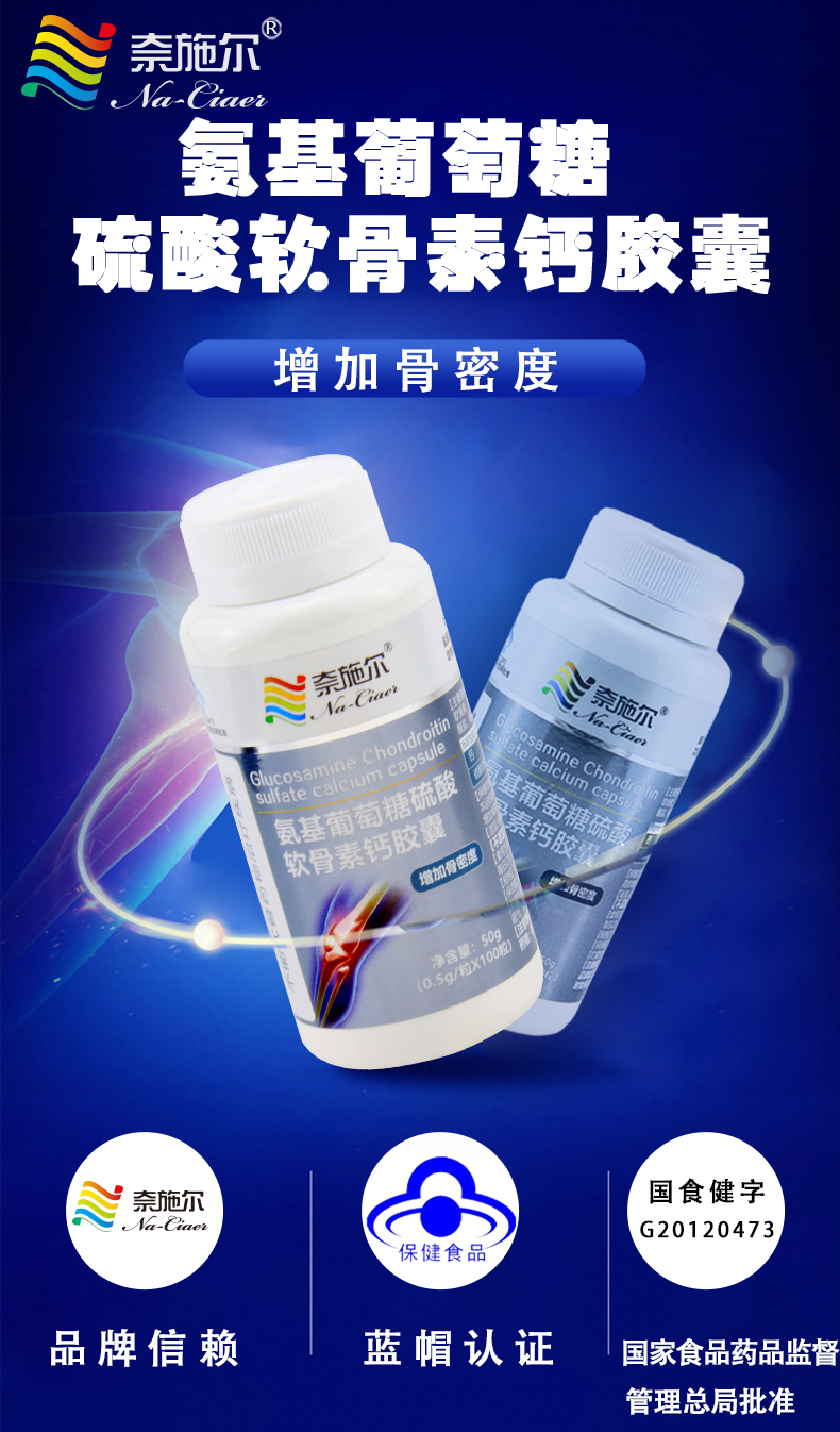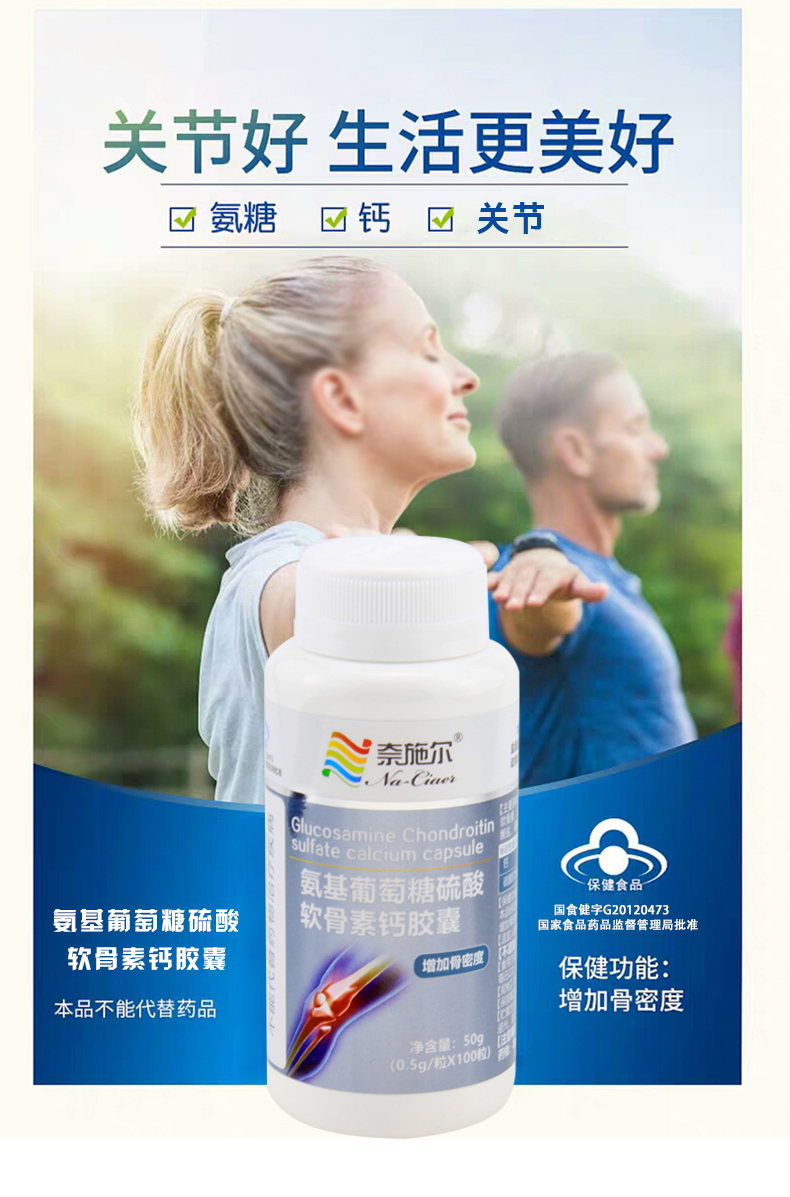 中国奈施尔氨基葡萄糖硫酸软骨素钙胶囊100粒/瓶
