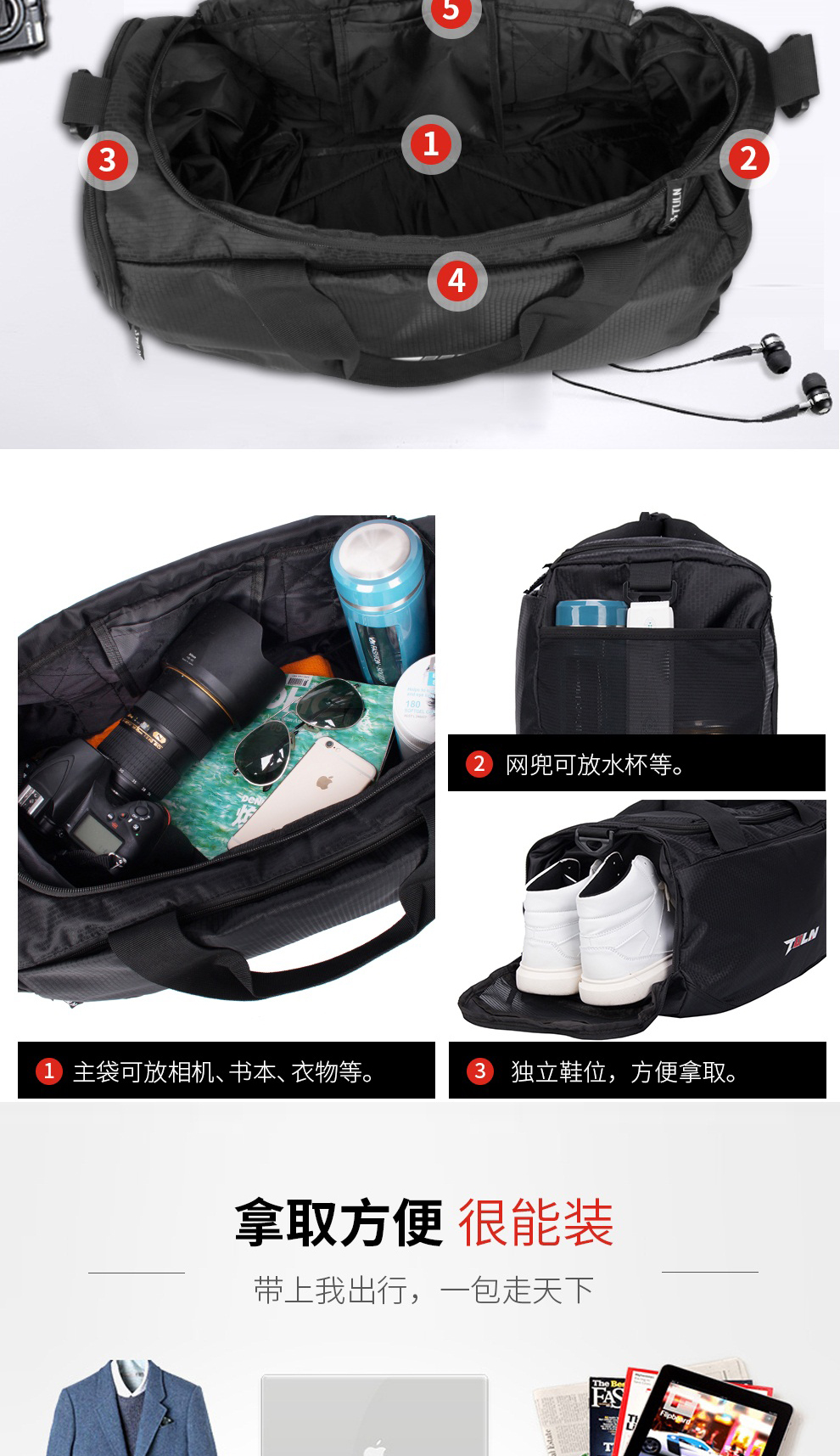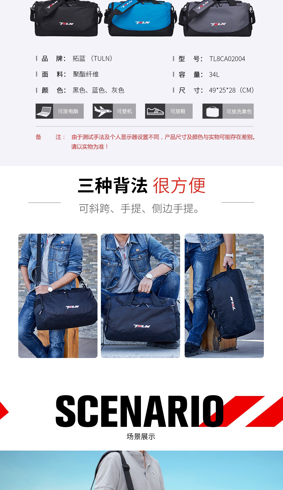 拓蓝 (TULN)旅行包大容量出差行李包男女健身包训练包手提型可套拉杆行李箱独立鞋位单肩斜挎 蓝色