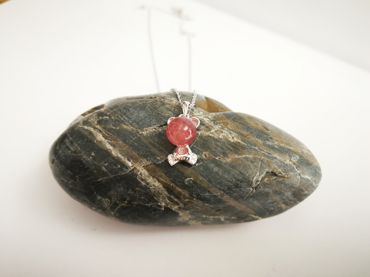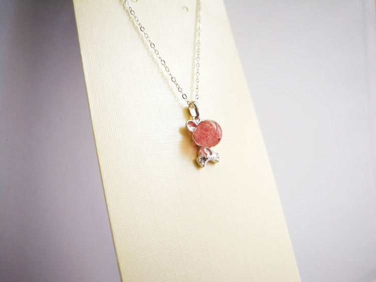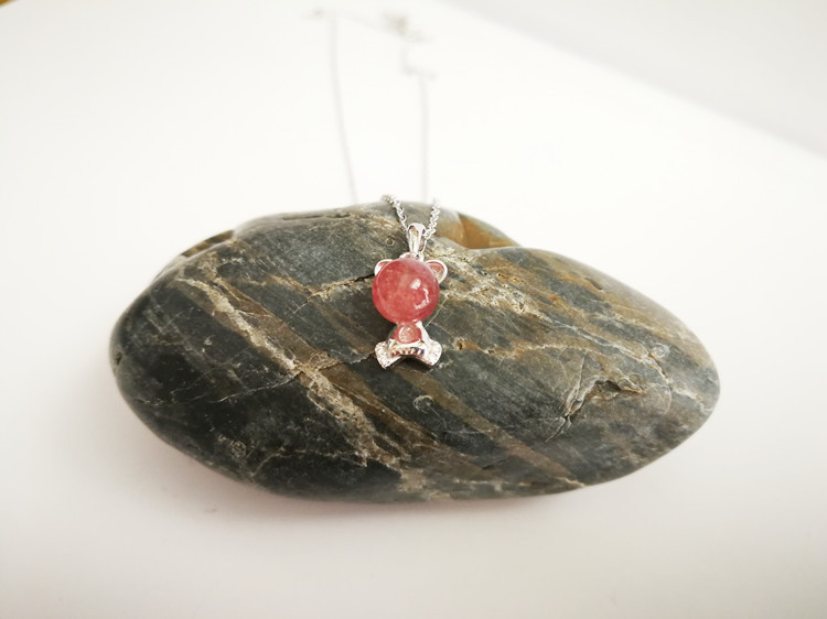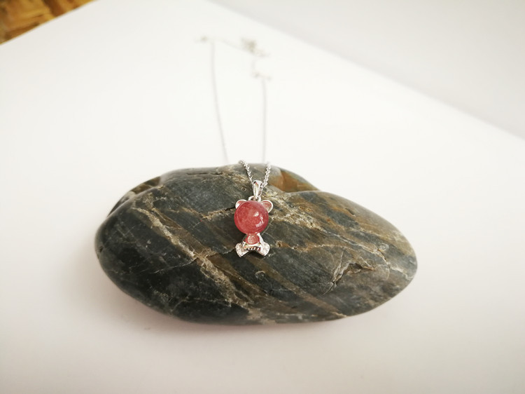 四福珠宝 天然草莓晶吊坠项链s925银饰 可爱熊项链招好运
