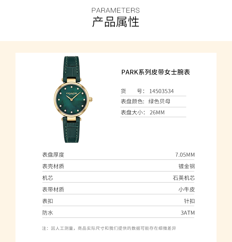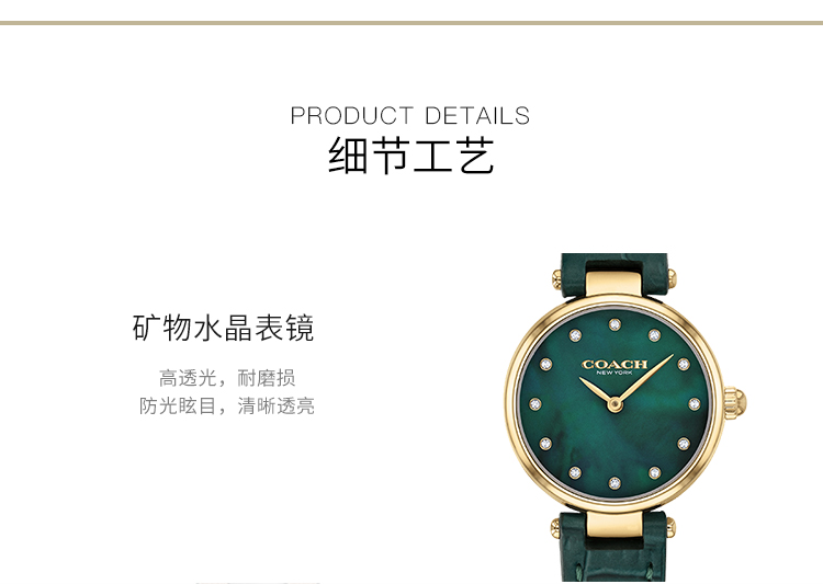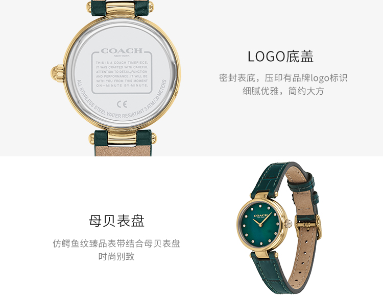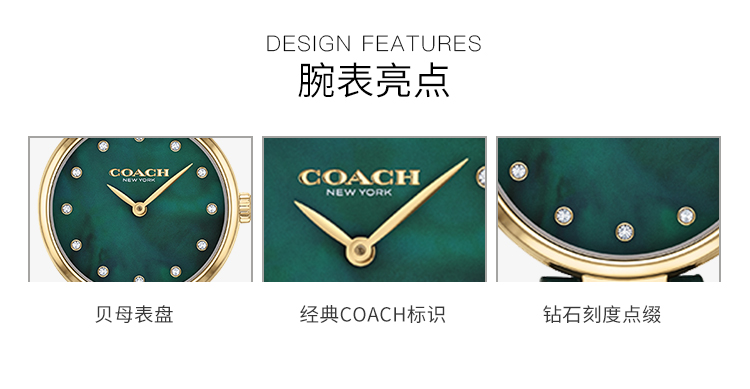 您所在的位置:首页 > 服饰箱包  > 饰品/手表 > 石英表  > 美国蔻驰COACH真皮仿鳄鱼纹珍珠母贝石英女表手表14503534【美国直邮】