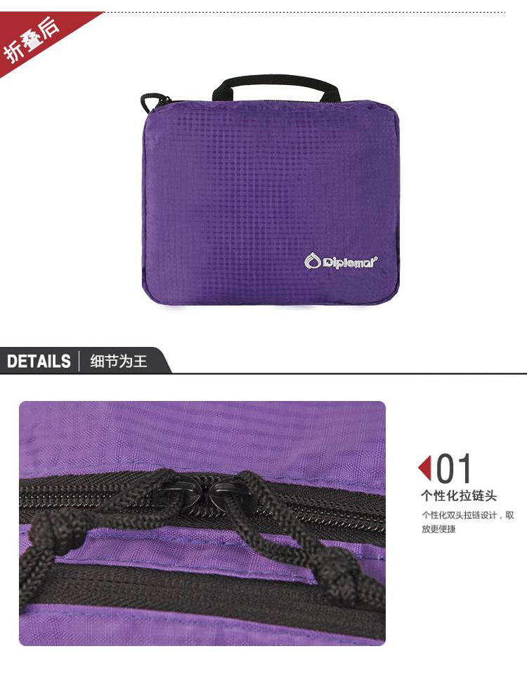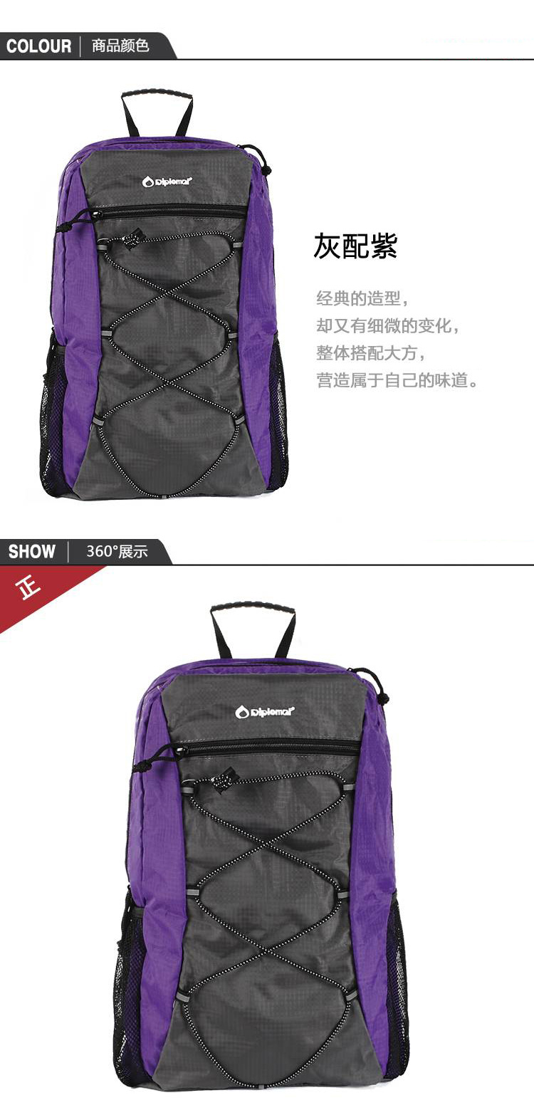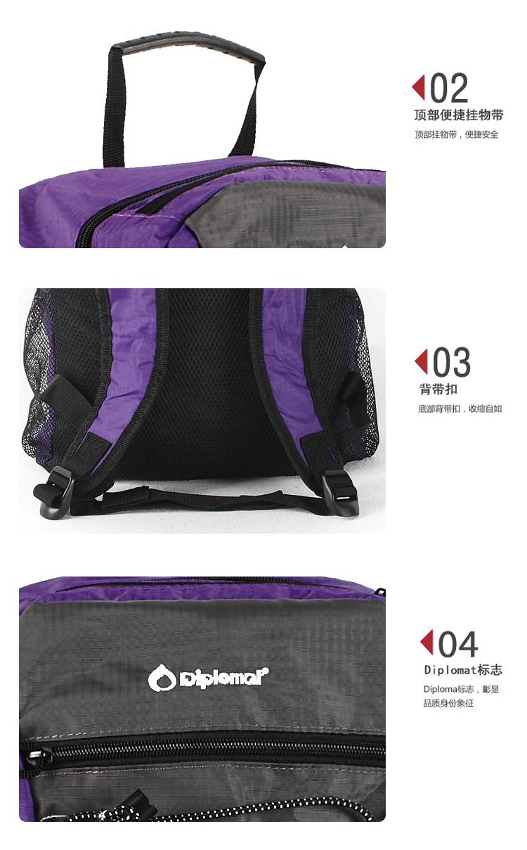 【授权商品】外交官Diplomat 尼龙面料 可紫色+灰色折叠背包DS-1270L