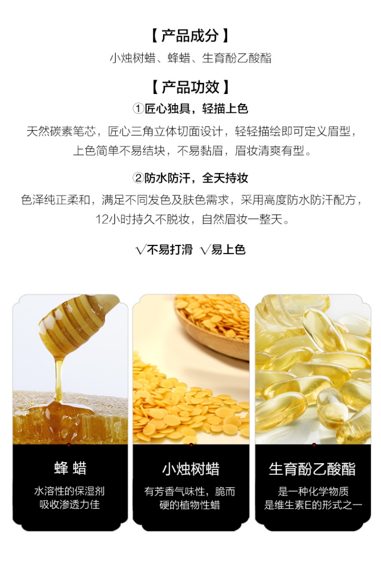 美康粉黛轻描素写眉笔 0.25g 黛灰 防汗持久不易脱色
