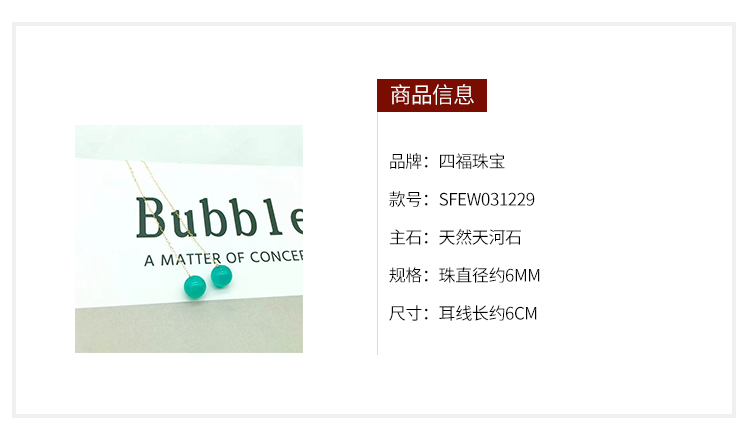 四福珠宝 18K金天然天河石耳线时尚优雅彩宝耳坠耳饰