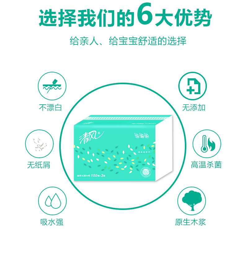 清风江南系列软包抽纸3层18包100抽