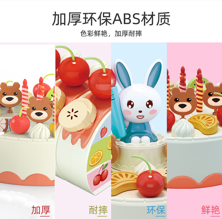 怀恩 可切生日蛋糕水果蔬菜玩具儿童套装组合切切乐女孩男孩过家家厨房 会发光 会唱歌的蛋糕 蓝色(65件套)
