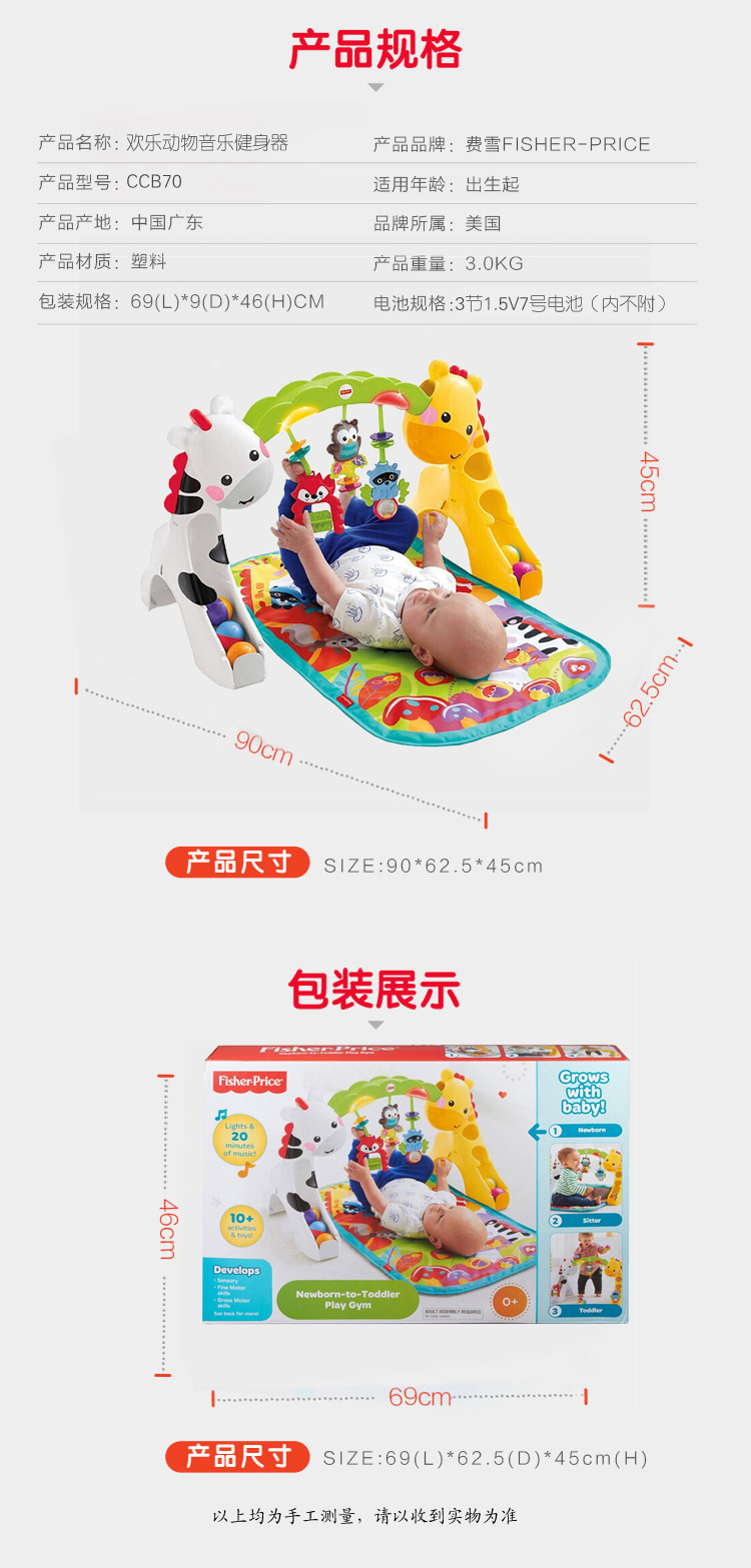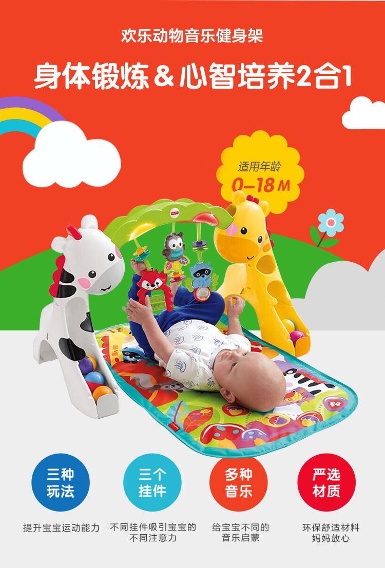 费雪(Fisher-Price) 欢乐动物音乐健身架 CCB70